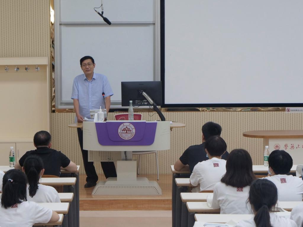 随后,马兵向同学们介绍了学院的学科设置和本科教学的相关情况。他以“哈利波特多大”这一问题引发同学们的思考,并勉励同学们珍惜青春最好的年华,明确规划、不负青春。他还强调,阅读是中文系学生安身立命的本事,文院学子要打开书本、静心读书,通过阅读提升自己的专业水平。