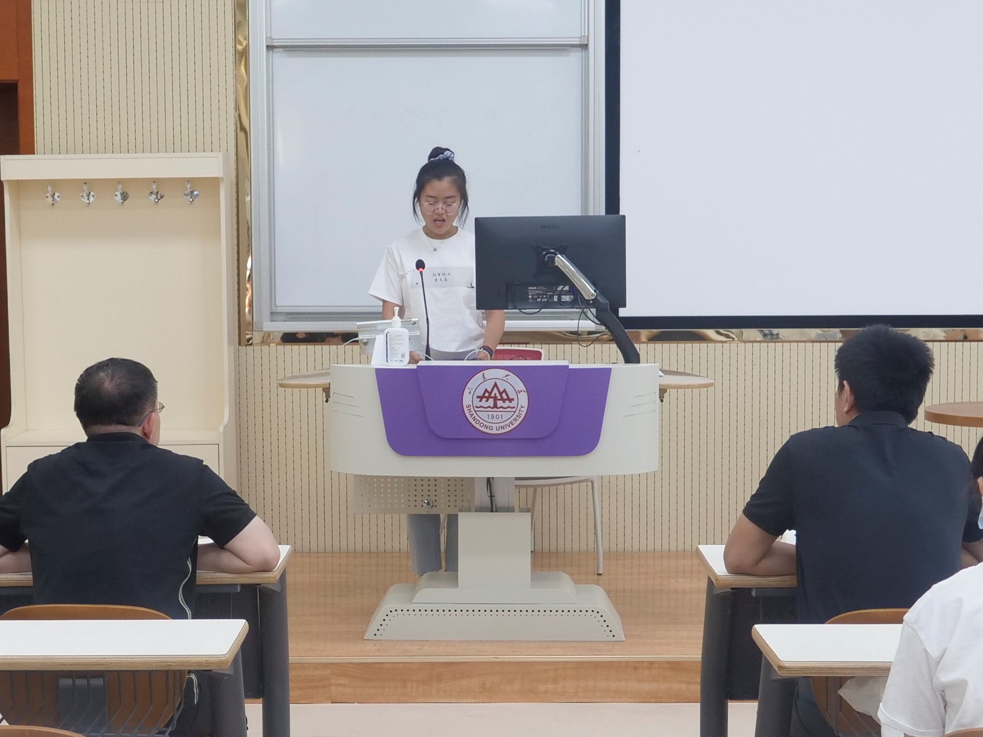 接着,20级本科生姚彬彬作为学生代表发言。她表示,作为一名新山大人,要肩负起山大人的使命与担当,珍惜与山大文院的缘分。站在人生的新起点上,同学们应当对自己提出更高要求,秉持严谨和刻苦的治学态度,努力提升自身的学术水平和道德素养,向前贤看齐。