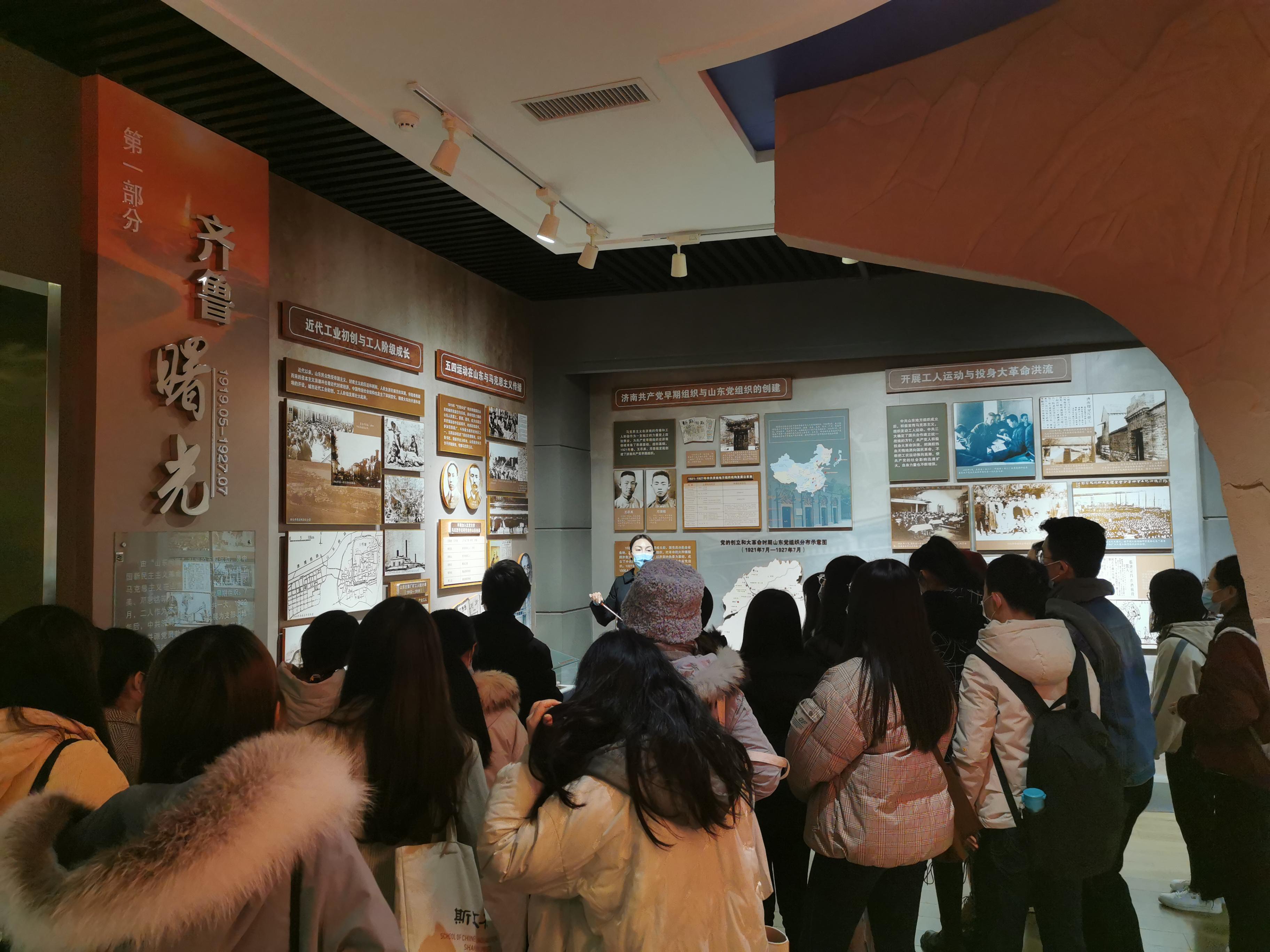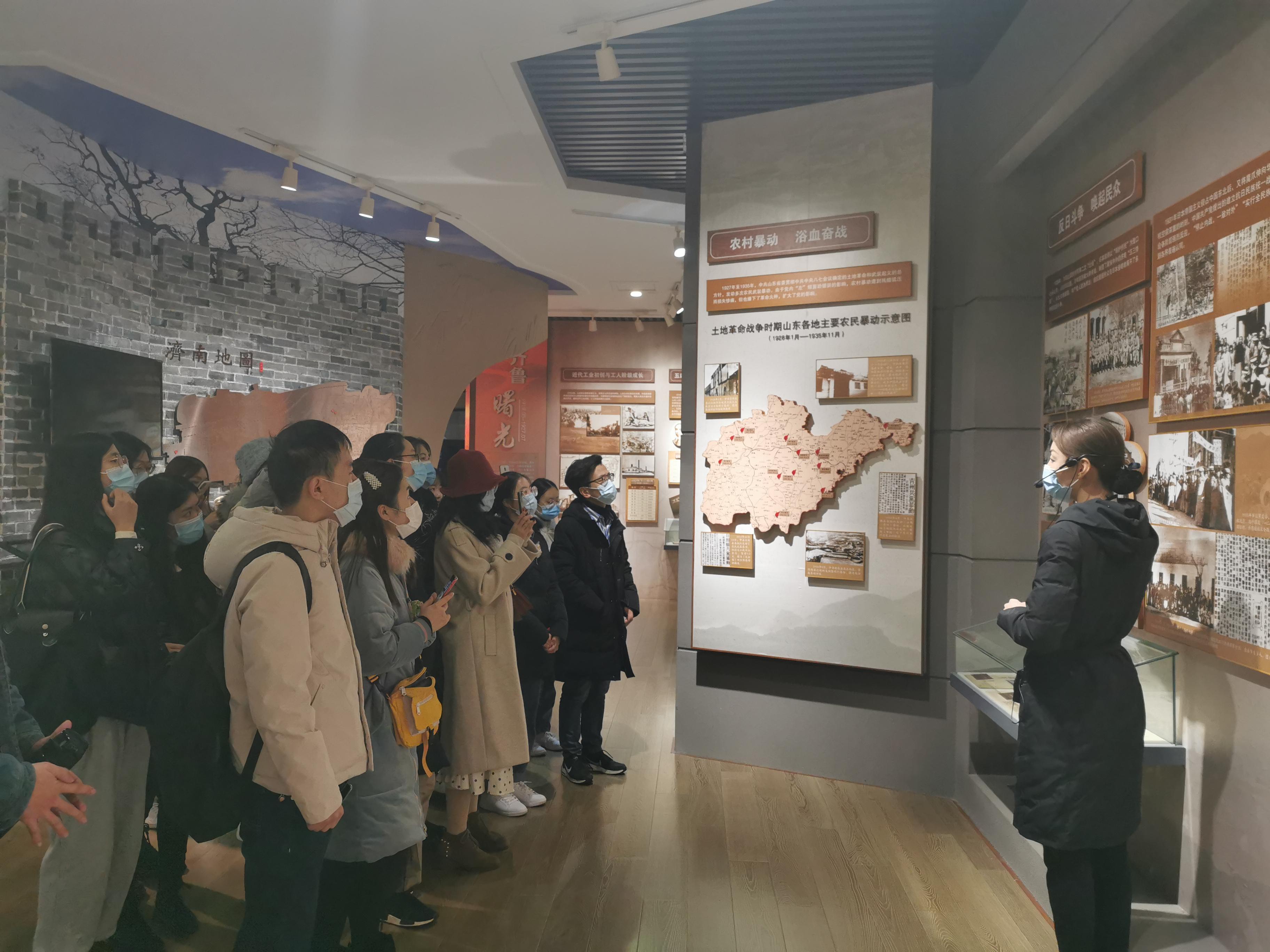 为进一步加强学生党支部建设,贯彻落实习近平总书记关于“四史”学习的重要讲话和指示精神,引导学生党员知史爱党,强化爱国主义精神,11月21日,文学院本科生党支部联合硕士研究生第三党支部组织学生党员前往中共山东省党史陈列馆进行参观学习。本科生党支部书记张博、硕士研究生第三党支部书记魏鑫及支部学生党员参加了此次活动。