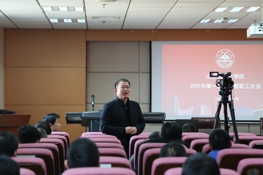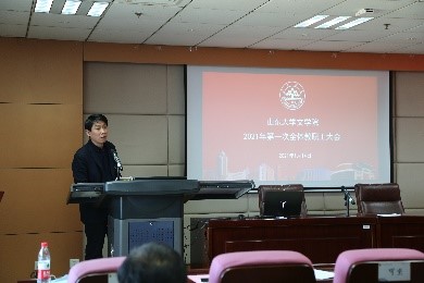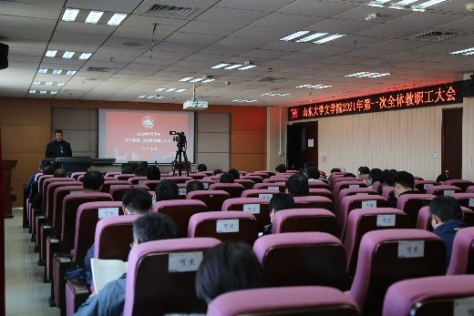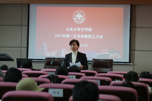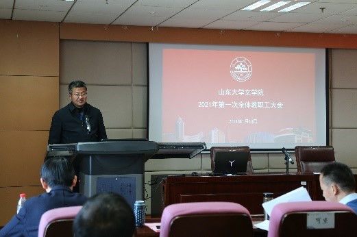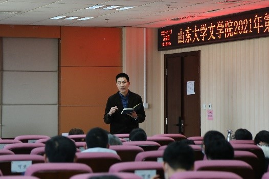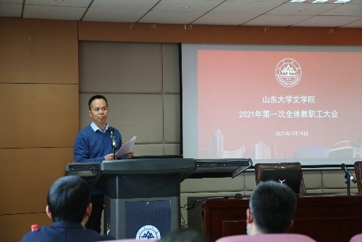 会上,院领导班子成员分别就自己分管的工作作了总结汇报。李剑锋布置了2021年研究生论文报告会工作,并汇报了2020年泰安研究生工作会议提议落实情况与今年改进的简要计划。程相占就学院科研工作汇报了过去一年248cc永利集团国家社科基金项目申报的基本情况,并鼓励学院老师积极申报,随后公布了文学院2019年优秀科研成果评审结果。马兵提出,学院老师应在日常教学中注重过程考核,此外本科生毕业论文开题时间较往年提前,希望各位老师予以重视。王萌在汇报中提到,目前国内疫情呈现散点爆发,学院延期离校学生较多,希望老师关注在校学生的学习生活与心理健康问题。沈文强调了寒假期间的安全问题,提醒教职工应充分认识疫情防控工作的严肃性,落实防疫措施,严格出行管理。张帅进一步强调了安全稳定问题的重要性,要求全体教职工人员注重办公室安全、注重疫情防控安全。