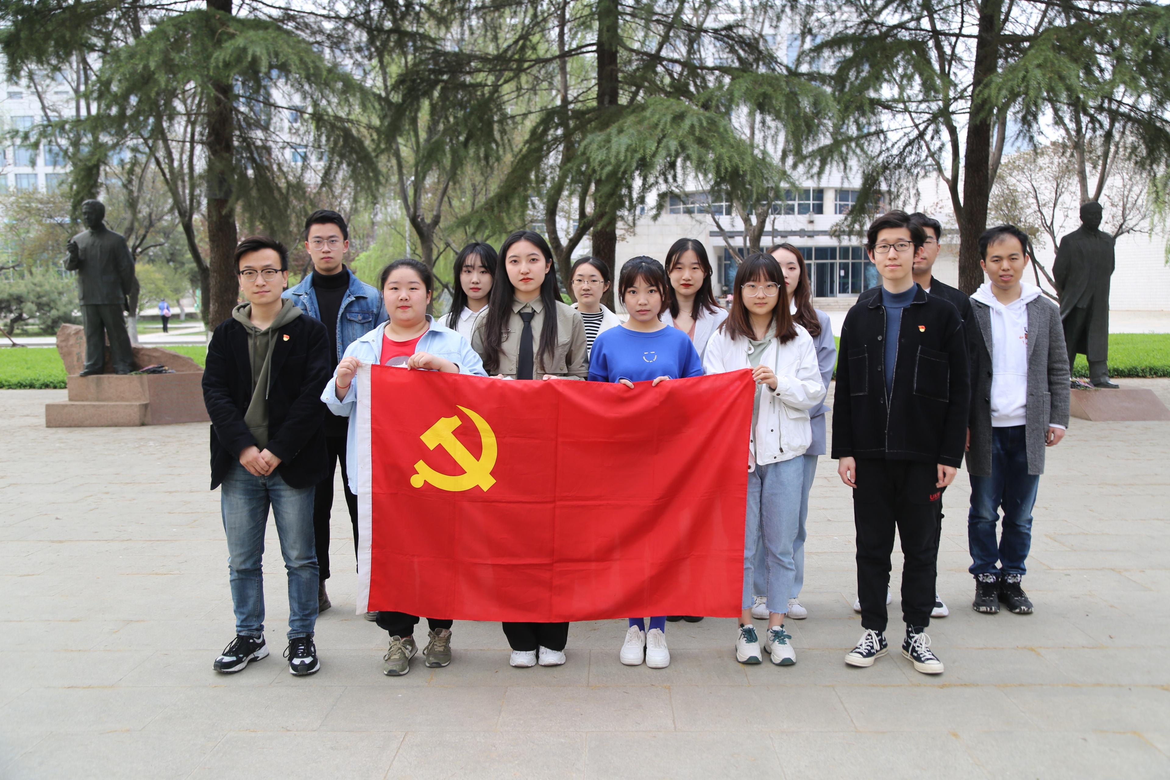 随后,党员们移步至华岗、成仿吾雕像处。两位校长均是党的历史上著名的革命家、教育家,为党的事业和山东大学的发展做出了不可磨灭的贡献。我校“成仿吾英才班”三期学员、支部预备党员宋文婷和尚文月为大家介绍了两位校长六次翻译《共产党宣言》的故事,分享了自己在仿吾精神的鼓舞下学习理论、投身实践的经历和体会。在活动过程中,一位曾在学校工作多年的老党员为活动的氛围所感染,热情地向同志们介绍了成仿吾的感人事迹。他通过讲述老校长在工作中关心青年、关心下一代,为翻译《共产党宣言》忘我付出的故事,盛赞成仿吾具有无产阶级革命家的广阔胸怀和远见卓识,并对学生党员们提出了殷切期望。