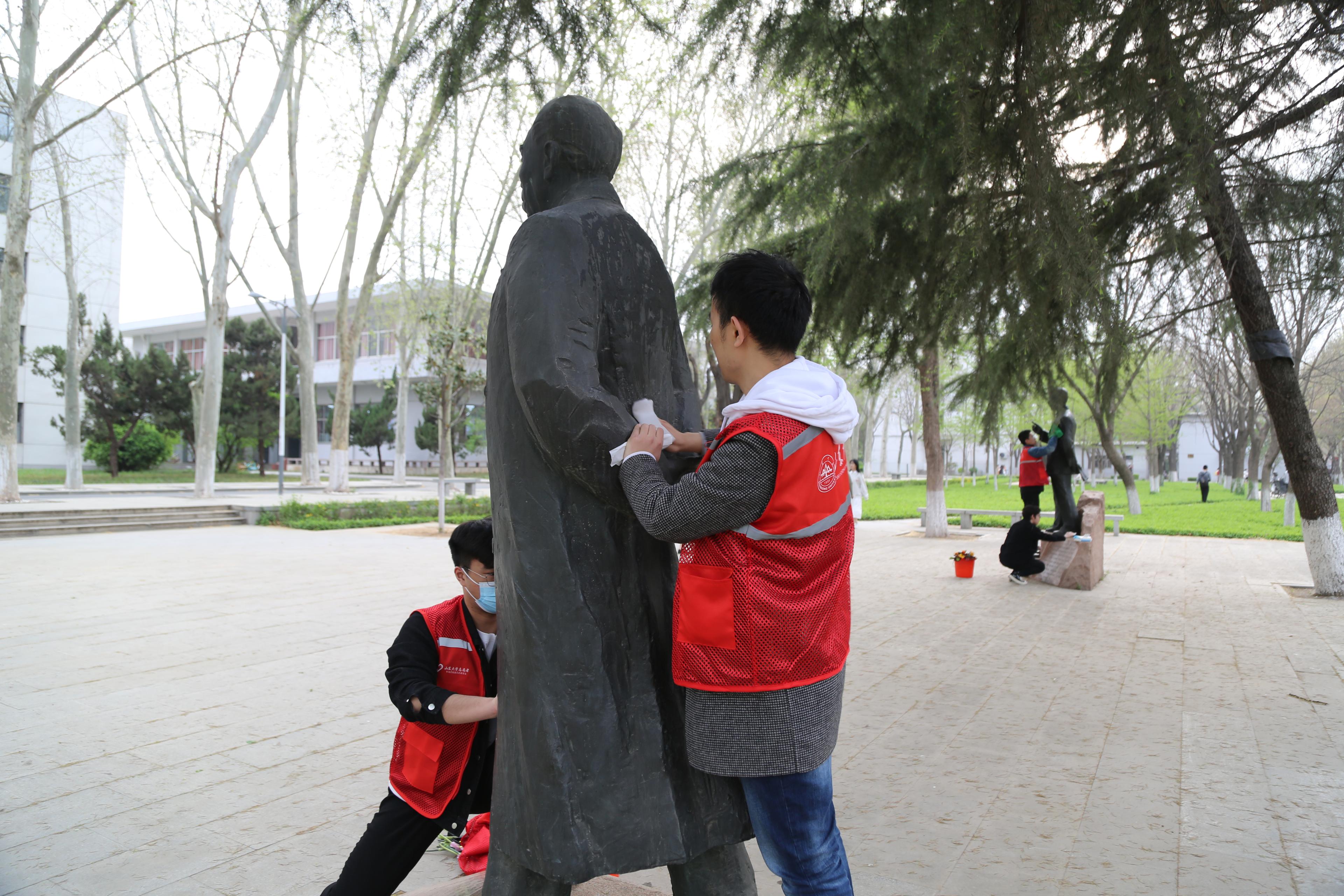 纪念活动结束后,学生党员们对华岗、成仿吾、闻一多、臧克家、冯沅君、陆侃如、蒋维崧等雕像进行了细致的打扫清洁工作,用实际行动表达了对我校先辈的缅怀与敬意。