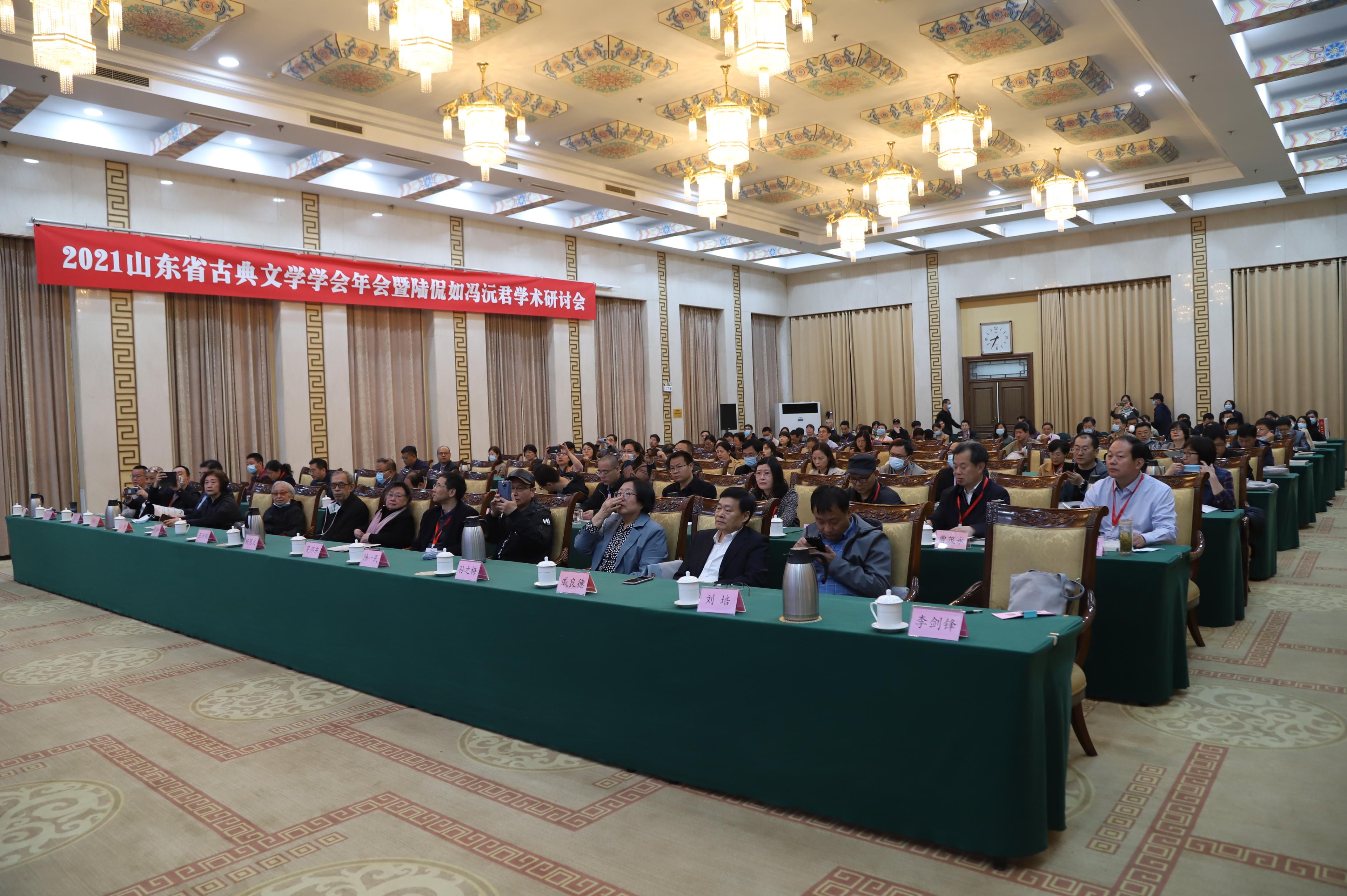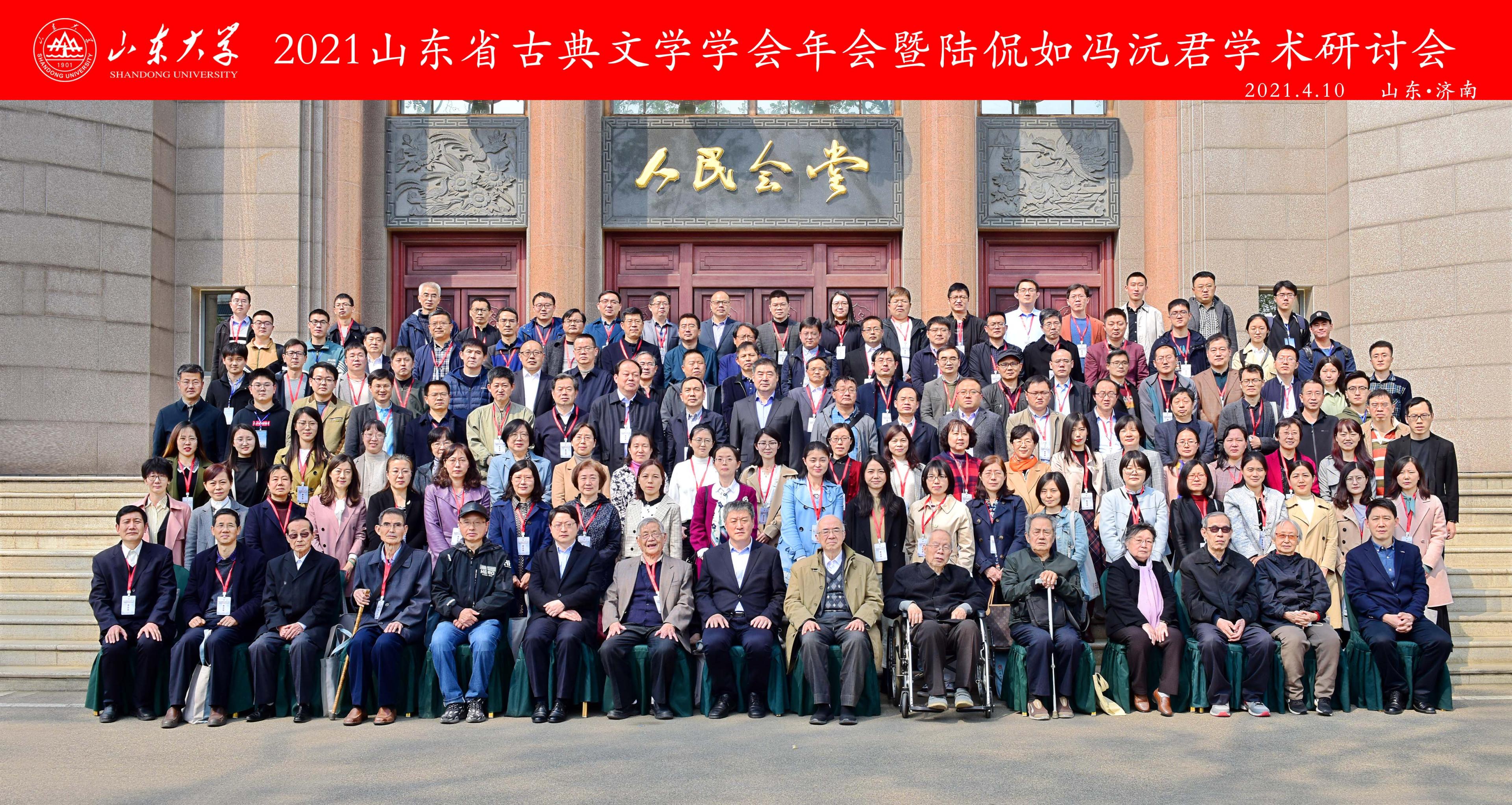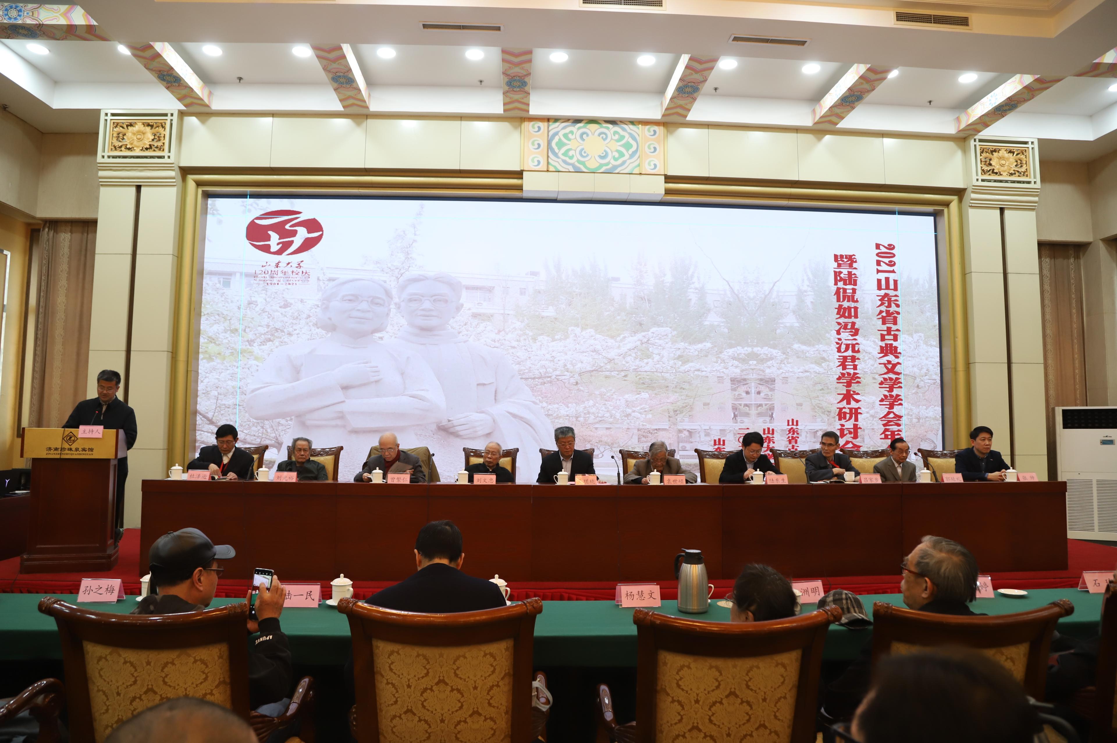 2021年4月9日,山东省古典文学学会、248cc永利集团在济南珍珠泉宾馆联合举办山东省古典文学学会年会暨陆侃如、冯沅君学术研讨会,山东大学党委常委、常务副校长王琪珑,山东省古典文学学会原会长、山大终身教授袁世硕先生,山东大学原校长、终身教授曾繁仁先生,陆侃如先生的研究生、人民文学出版社编审刘文忠先生,陆、冯先生的授业弟子吕家乡、刘光裕、郭延礼、杨慧文等,陆、冯先生的亲属陆东生先生,山东省古典文学学会会长、山大文学院院长杜泽逊教授,文学院党委书记张帅以及山东省古典文学学会110余位专家学者出席研讨会。开幕式由山东省古典文学学会副会长、山大文学院副院长李剑锋教授主持。