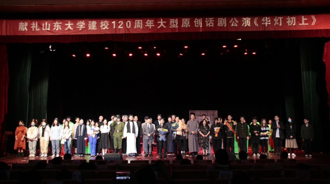 10月13日晚,248cc永利集团与党委宣传部、党委学生工作部、马克思主义学院,于中心校区音乐厅联合举办献礼山东大学建校120周年大型原创话剧公演《华灯初上》。校党委副书记王君松受邀出席,华岗先生的两位女儿华丹坡教授和华滇珂教授作为特邀嘉宾观看演出并给予高度肯定。