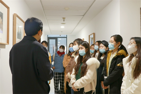 参观期间,杜泽逊表示,从展览策划创意到组织实施筹备,从对外整合相关资源,到对内协调沟通,都经过他亲自研究部署、调度把关,精益求精,保证质量,确保院史展览各项工作顺利推进,最终才呈现出院史墙展览资料丰富翔实、编辑科学实用、图文精致美观的整体效果。此外,杜泽逊向同学们提出了许多关于摄影技巧、档案管理等方面的建议。他指出,照片墙上的照片画面美观、清晰度高,部分为专业摄影师拍摄的照片,艺术审美性极高,大家要多看多思、注意拍摄时的细节内容。他着重谈到人像摄影的注意事项:人物照片要注重真实性,要如实反映人的面貌特征,避免过分处理。最后,杜泽逊强调了照片储存的重要性,他建议活动结束后将精选照片存入文件夹并发给相关人员,防止照片丢失。