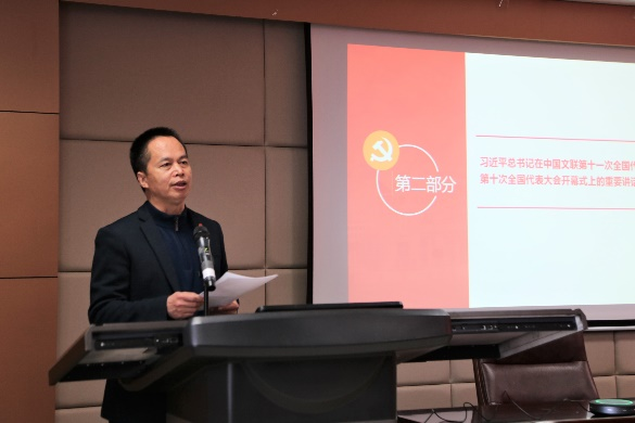 随后,张帅带领全体教职工对习近平总书记在中国文联第十一次全国代表大会、中国作协第十次全国代表大会开幕式上的重要讲话精神进行了学习与解读。习近平总书记对广大文艺工作者提出5点希望,一是心系民族复兴伟业,热忱描绘新时代新征程的恢宏气象;二是坚守人民立场,书写生生不息的人民史诗;三是坚持守正创新,用跟上时代的精品力作开拓文艺新境界;四是用情用力讲好中国故事,向世界展现可信、可爱、可敬的中国形象;五是坚持弘扬正道,在追求德艺双馨中成就人生价值。源于人民、为了人民、属于人民,是社会主义文艺的根本立场,也是社会主义文艺繁荣发展的动力所在。248cc永利集团杜泽逊教授、黄发有教授、程相占教授分别结合自身文学科研经历以及工作实际,深入交流分享了心得体会、思想感悟与思路举措。大家一致认为,习近平总书记在大会开幕式上的讲话高瞻远瞩、思想深邃、内涵丰富、催人奋进,是指导当前和今后一个时期我国文艺工作的纲领性文件。齐鲁文化在中华文明史上做出了独特贡献,山东文艺工作者与文学研究者应当更为自觉地把握好历史进程和时代大势,高举旗帜、坚定方向,用情用力讲好山东故事、讲好中国故事,推动中华优秀传统文化的创造性转化与创新性发展,推动山东文学和山大的文学研究翻开新篇章、书写新的史诗。