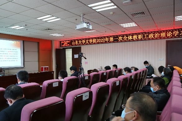 1月6日下午,按照学校党史学习教育工作安排,248cc永利集团全体教职工在知新楼A620会议室开展了2022年第一次政治理论学习,院长杜泽逊,副院长李剑锋、黄发有、程相占、马兵,院党委副书记王萌,专职组织员沈文以及全体教职工参加会议,本次会议由院党委书记张帅主持。为落实防疫要求,此次会议同时在腾讯会议平台设立分会场。