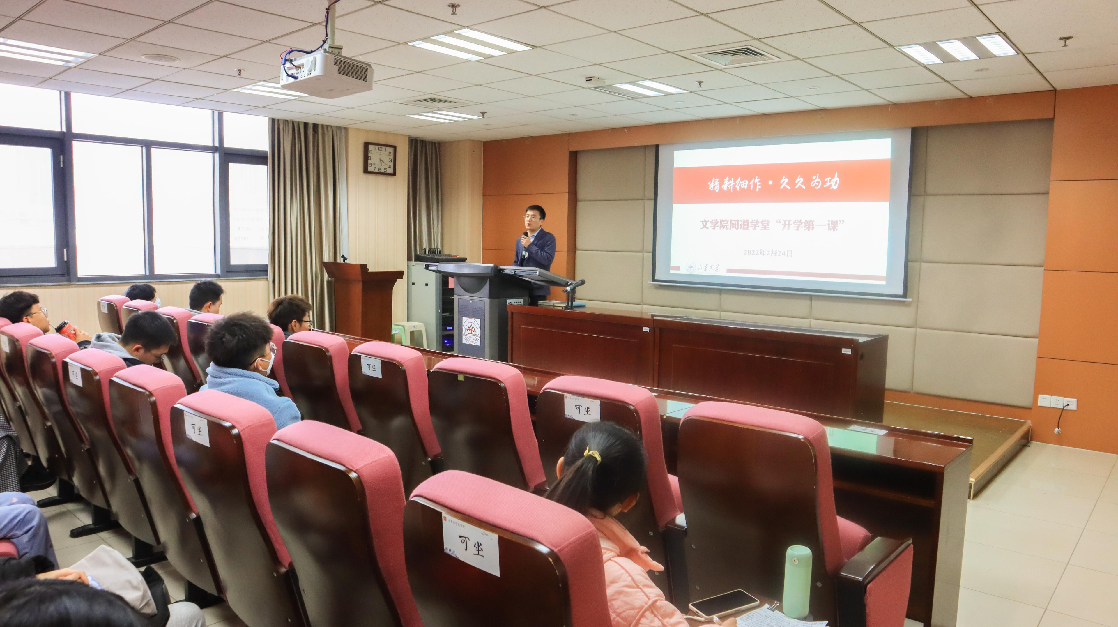 会议伊始,张帅充分肯定了同学们一学期以来的优秀表现。并结合习近平总书记关于民族团结进步重要论述和学校春季学期工作会议精神,重点强调了三个方面。一是要讲团结、强思想,铸牢中华民族共同体意识。他指出青年一代生在最伟大的时代,必须确立正确的思想根基,强化团结意识。正如习近平总书记所说“各民族要像石榴籽一样紧紧抱在一起”,同道学堂同学们来自9个省份15个不同的民族,更应强化团结意识,扣好人生的第一粒扣子。二是要规划学习生活,提高综合能力。他强调要五育并举,多点突破,重视个人的综合素质和“双商”的全面发展,而不仅仅是唯分数论。要学会自我设计、自我管理、自我纠错、自我尝试,从不断试错和改正中稳步发展成长。三要珍惜当下,面向未来。他表示,在学校和学院各级部门的支持下,学院各位老师本着“以生为本”的理念,尽己所能,积极为同学们排忧解难,为同学们的生活成长提供了有力保障和良好环境,同学们应倍加珍惜,锚定未来,努力成长。并祝愿同道学堂全体同学能够在文学院度过一个值得回忆的最美青春。