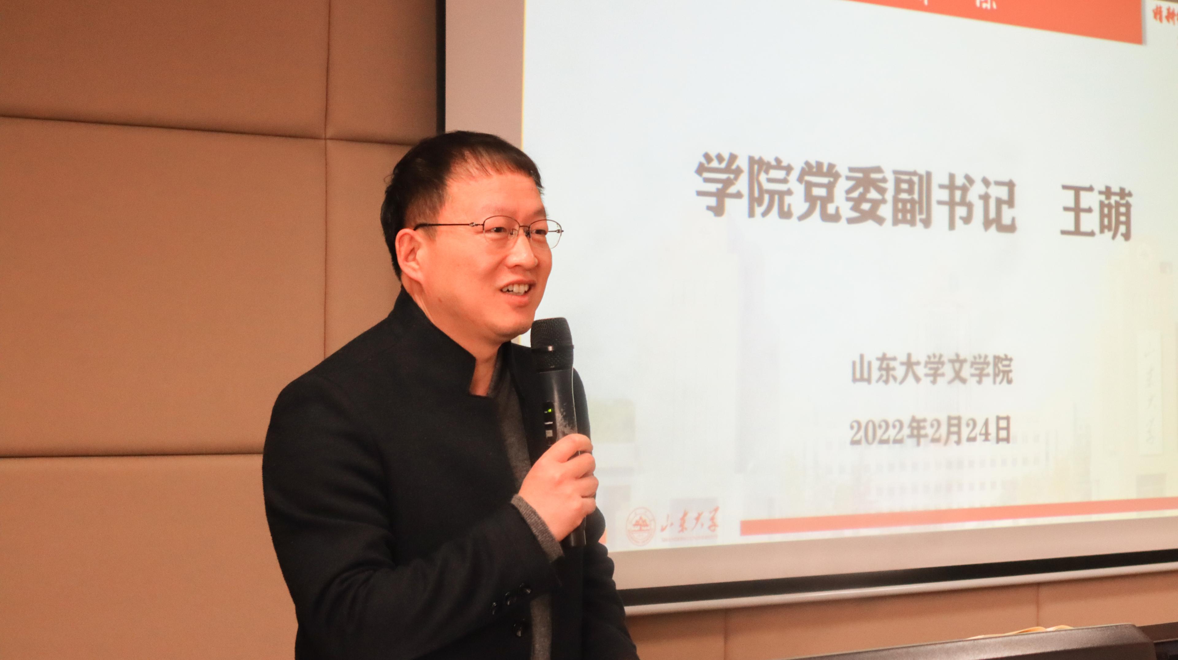 王萌在课上传达了郭新立书记在春季学期工作会议上的讲话精神,深入剖析“精耕细作”这一思想内涵并指出了勤学储能、功不唐捐的重要意义,并以“融入、学习、成长、完善”四个关键词展开论述。第一,他就同学们如何融入山大发展大局传达了学校的“121行动路径”、“七大战略”等,指出山大学生应积极应对机遇和挑战。同时他强调要牢记习近平总书记提出的“国之大者”,当代青年学生要思考如何融入国家大局,承担起时代大任。第二,他指出山大正对标对表“三新一高”要求,同学们应更加注重学科融合,用长远的目光看待事物的发展。第三,他根据当今网络发展形势,警示同学们要杜绝“娱乐至死”、“金钱本位”等错误思想,应当树立社会主义核心价值观和成人为己、成己达人的理念。第四,他结合知名校友的事迹,向同学们阐述了刻苦学习并在学习中总结方法经验对行为习惯养成和人生发展具有的重要意义。