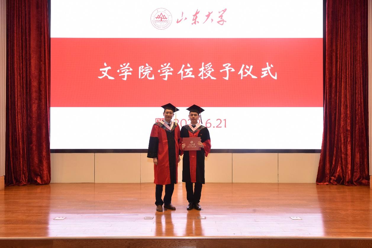 杜泽逊首先在致辞中向全体毕业生表示祝贺。随后,他讲述了刘文忠整理、编辑老师陆侃如的遗稿《中古文学系年》并将原有手稿送归山大文学院的故事,又回忆了山大文学院从陆东生先生处获得冯陆夫妇《中国诗史手稿》的经历。从这两个故事出发,杜泽逊阐述并强调了“传承”的意义,教导同学们深入认识自己的父母老师,认真学习和体悟先辈所传授的知识与精神。他强调,知识的代际传递与完成国家民族使命之间存在密不可分的关系,同学们应自觉接过先辈手中的接力棒,将中国的文化事业发扬光大,共建美好未来。他还指出,本届毕业典礼在战胜校园疫情的情况下举行,意味着信心与希望,期待毕业生们能够以积极昂扬的心态迎接人生的下一阶段,树立远大理想,将国家与民族的历史使命时刻担负在肩上,坚定地走在前行的路上。