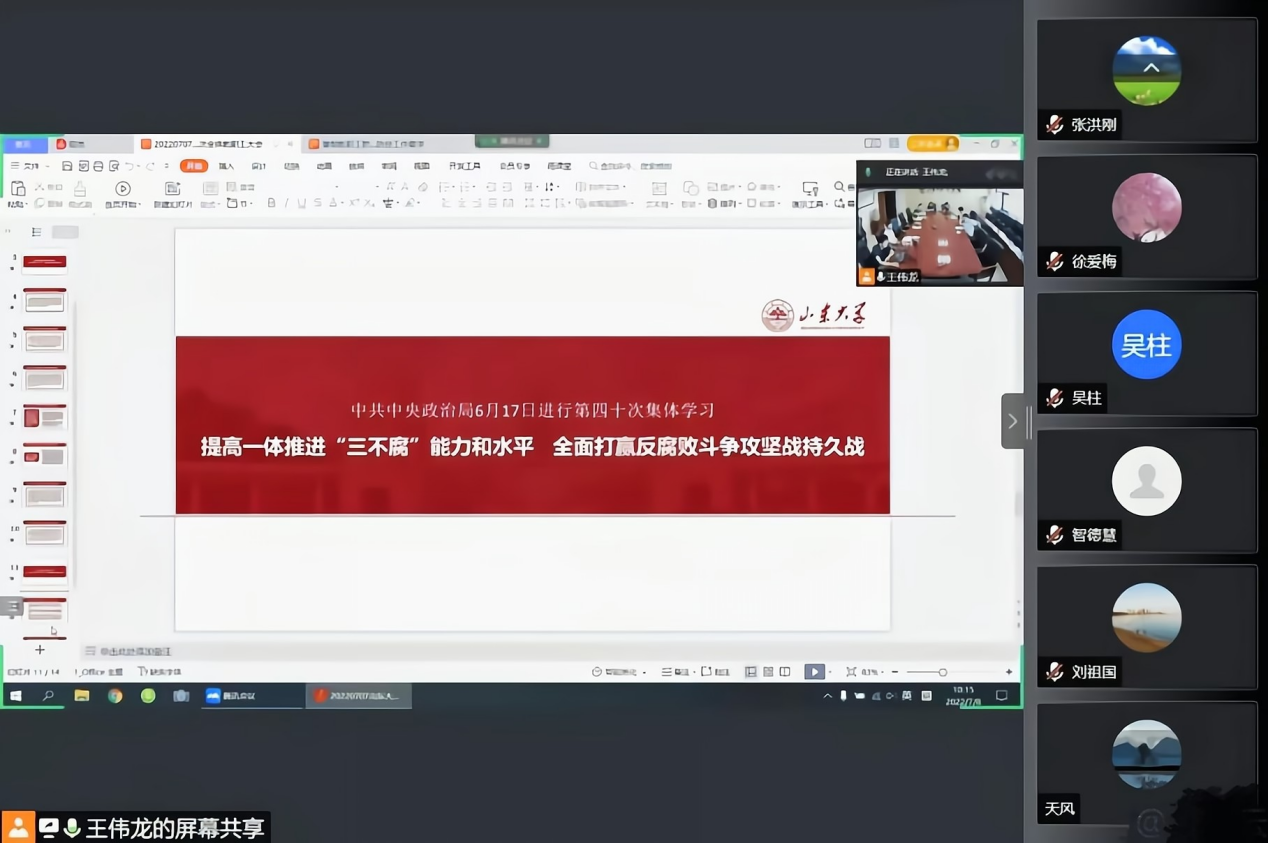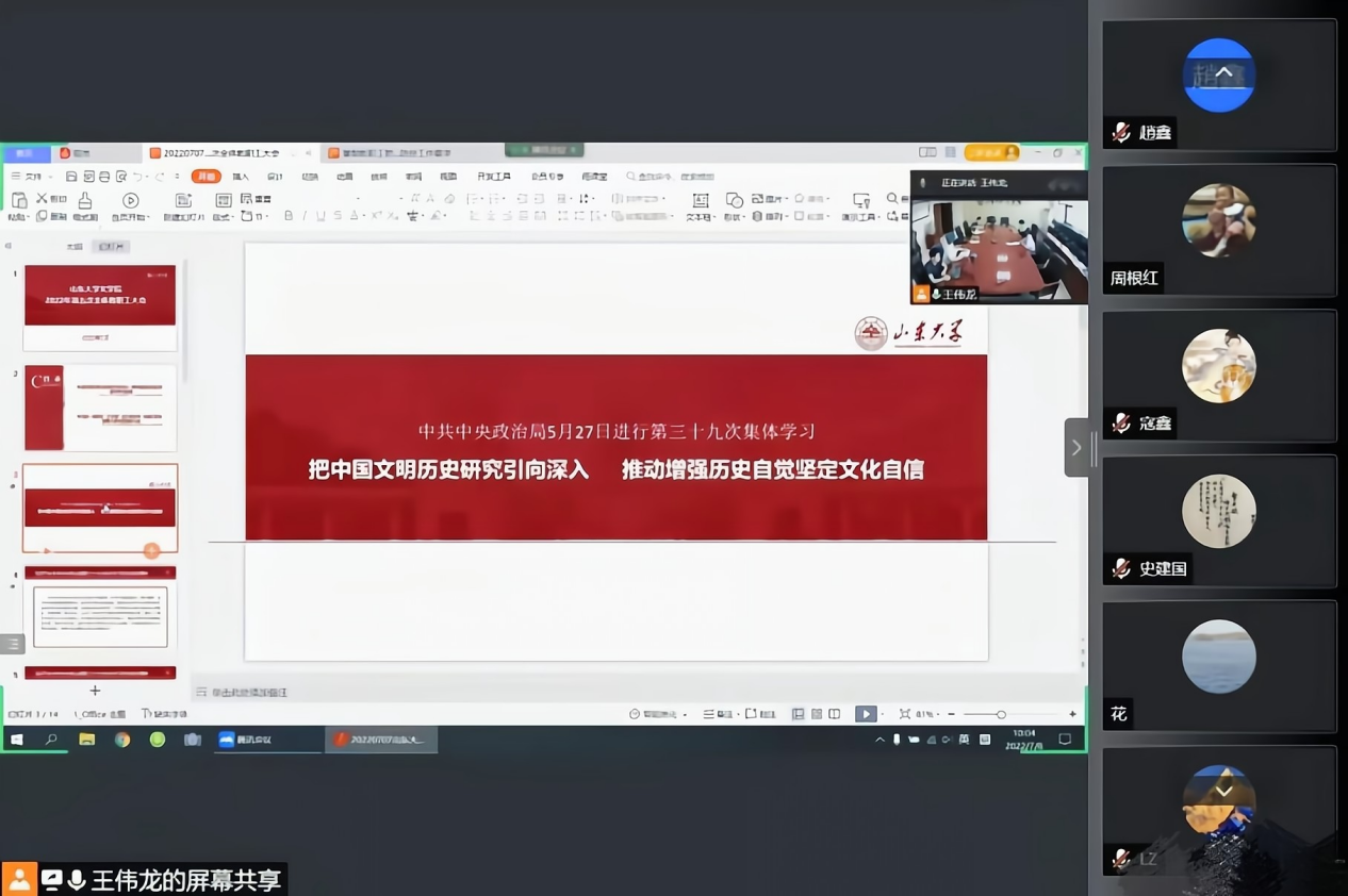 7月8日上午,248cc永利集团于知新楼A706开展第五次全体教职工政治理论学习,并在腾讯会议平台设立线上分会场。本次会议由院党委书记张帅主持,院长杜泽逊,常务副院长黄发有,副院长程相占、马兵、杨建刚、樊庆彦,院党委副书记王萌,副处级组织员沈文以及全体教职工参加会议。