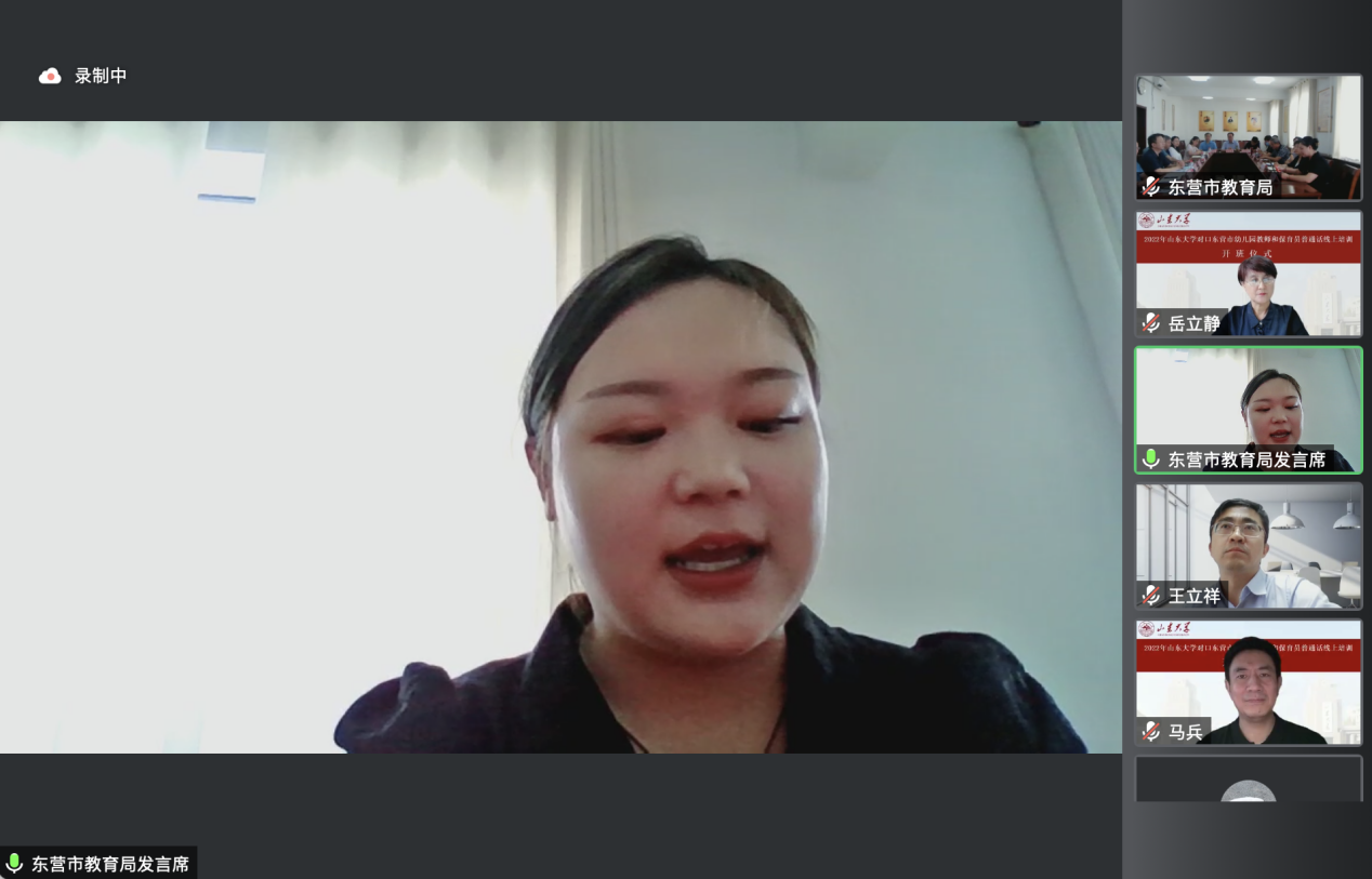 随后,董永新介绍了东营市教育局的语言文字工作进展,他表示东营市相关部门将认真落实省语委有关要求,精心组织、严格管理,确保培训任务圆满完成。苟卓林重点强调了培训教学管理规则和注意事项,希望学员们能服从项目安排、严守培训纪律,全身心地投入到培训中。东营市四区二县分管领导分别介绍了其所在区县幼儿园教师和保育员普通话水平测试情况和工作开展情况。