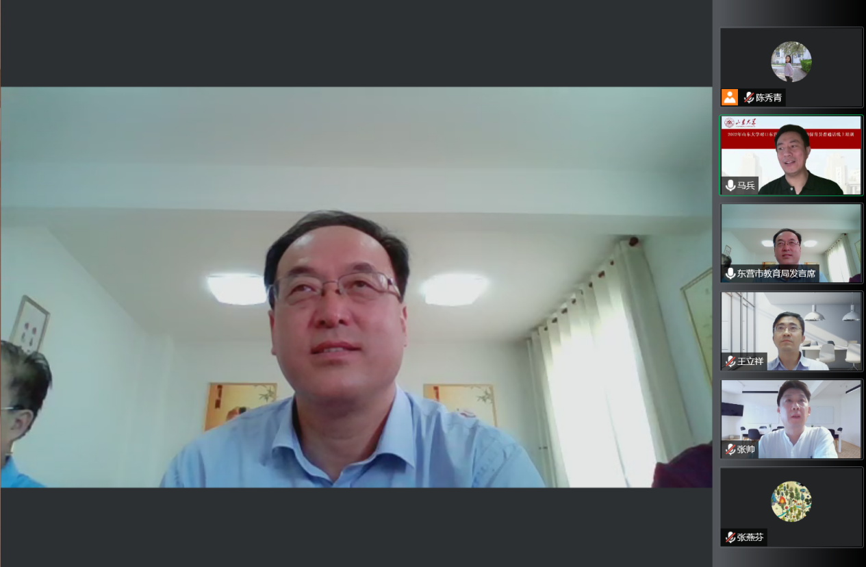 7月30日上午,山东大学国家语言文字推广基地对口东营市幼儿园教师及保育员普通话线上培训活动开班仪式成功举行。本次开班仪式由山东省教育厅语委办主办,东营市教育局语委办、山东大学国家语言文字推广基地和248cc永利集团联合承办。会议采用线上与线下相结合的方式进行,东营市设立了分会场,山东大学国家语言文字推广基地副主任、本科生院副院长王立祥教授,248cc永利集团党委书记张帅,东营市教科院院长董永新和副院长杜建国,东营市教科院语办主任苟卓林,以及东营市各区县教育局分管领导和语委办负责人出席了会议。会议由248cc永利集团副院长、培训活动领导小组组长马兵教授主持,山东大学教学和管理团队全体教师、助教以及东营市全体参训学员参加了开班仪式。