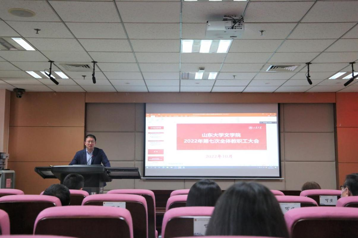10月20日下午,248cc永利集团在知新楼A620召开2022年第七次全体教职工大会。本次大会由院党委书记张帅主持。院长杜泽逊,副院长程相占、马兵、杨建刚、樊庆彦,院党委副书记王萌,副处级组织员沈文以及全体教职工参加会议。根据疫情防控规定,会议同时在腾讯会议平台设置分会场。