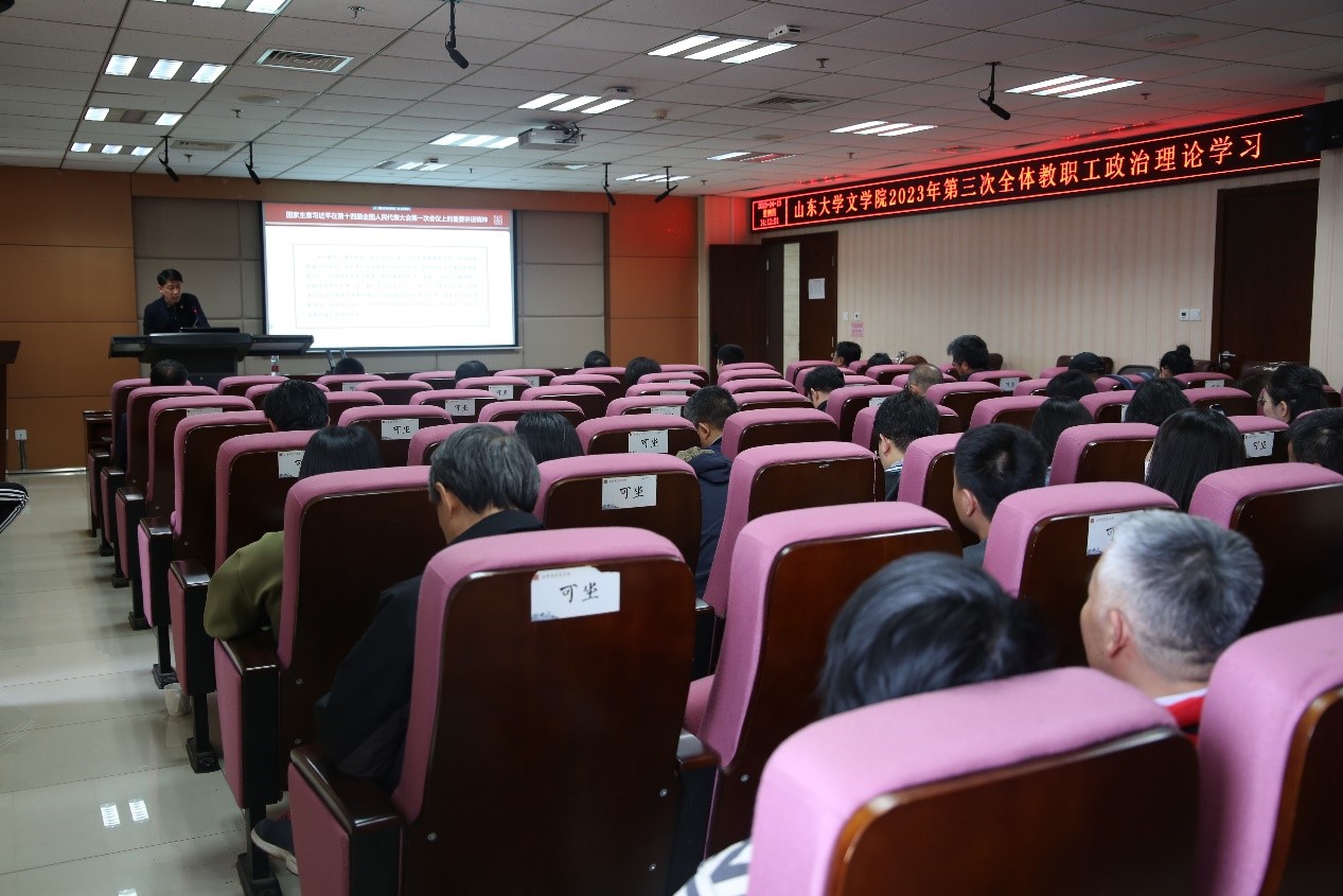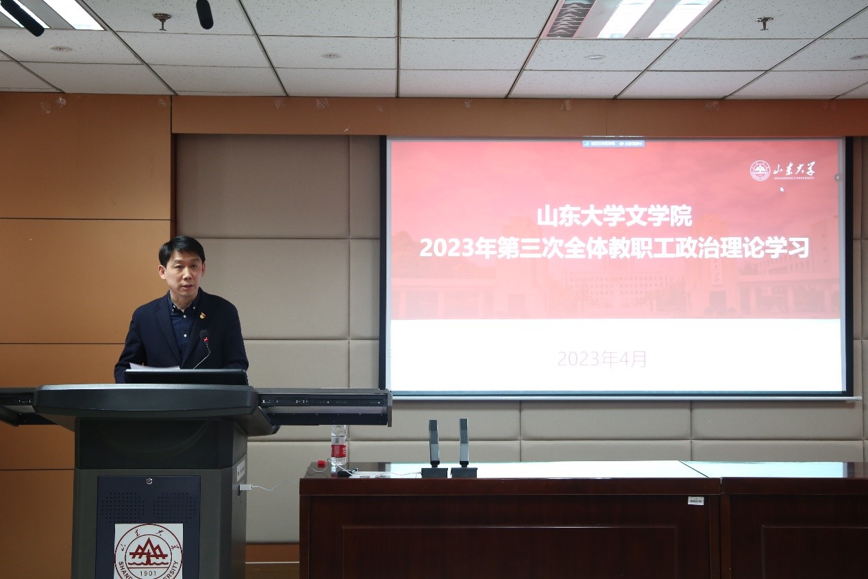 接着,张帅传达了《中共中央关于在全党深入开展学习贯彻习近平新时代中国特色社会主义思想主题教育的意见》)和山东大学召开学习贯彻习近平新时代中国特色社会主义思想主题教育动员大会的会议精神。他指出,郭新立书记在全校学习贯彻习近平新时代中国特色社会主义思想主题教育动员大会上的讲话,号召全校各级党组织和广大党员要深入学习贯彻习近平总书记重要讲话精神,从坚定捍卫“两个确立”、坚决做到“两个维护”的高度深刻把握主题教育的重大政治意义、理论意义、实践意义,并从坚持对标对表、坚持系统观念、坚持从严从实三个方面提出了明确要求。张帅强调,我们要坚决贯彻党中央和学校党委的部署要求,坚持把“学思想、强党性、重实践、建新功”的总要求贯穿主题教育始终,坚持学思用贯通、知信行统一,把习近平新时代中国特色社会主义思想转化为坚定理想、锤炼党性和指导实践、推动工作的强大力量,努力以学铸魂、以学增智、以学正风、以学促干,推动主题教育走深走实,为奋进新征程、建功新时代提供坚强有力的政治引领和政治保障。
