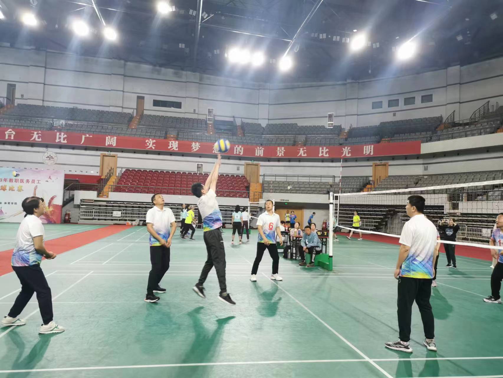 为全力推动我校体育工作健康开展,不断丰富教职医务员工文体生活,增强教职医务员工的凝聚力和向心力,山东大学于10月21日至22日举办2023年教职医务员工气排球比赛。本次比赛由校工会、妇委会主办,体育学院协办,参赛单位为一校三地基层工会。248cc永利集团工会积极组队参加比赛,院工会主席沈文担任领队,队员包括王伟龙老师、贾伟老师、杨海燕老师、果娜老师、乐进进老师、姚文昌老师和刘阳河老师。