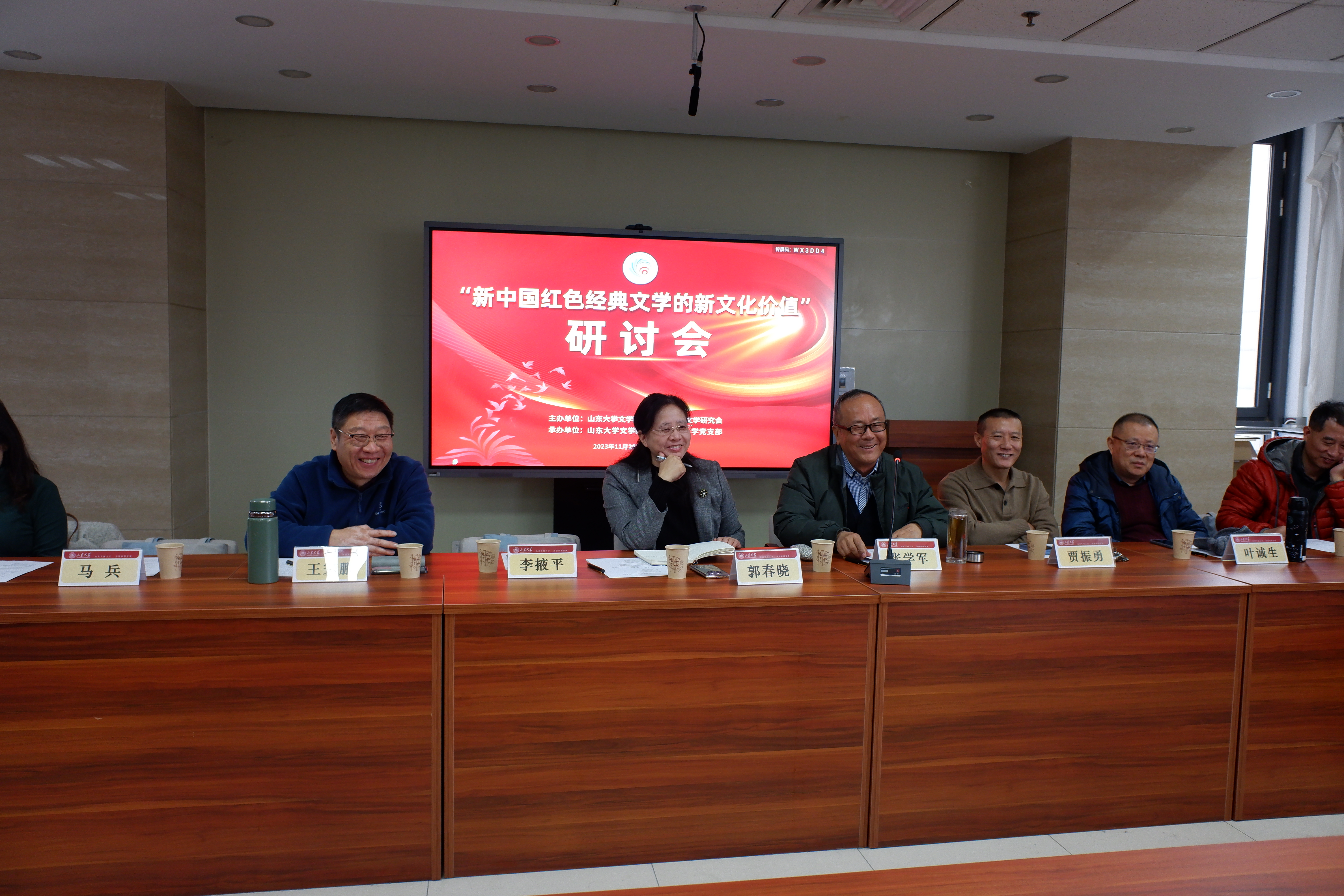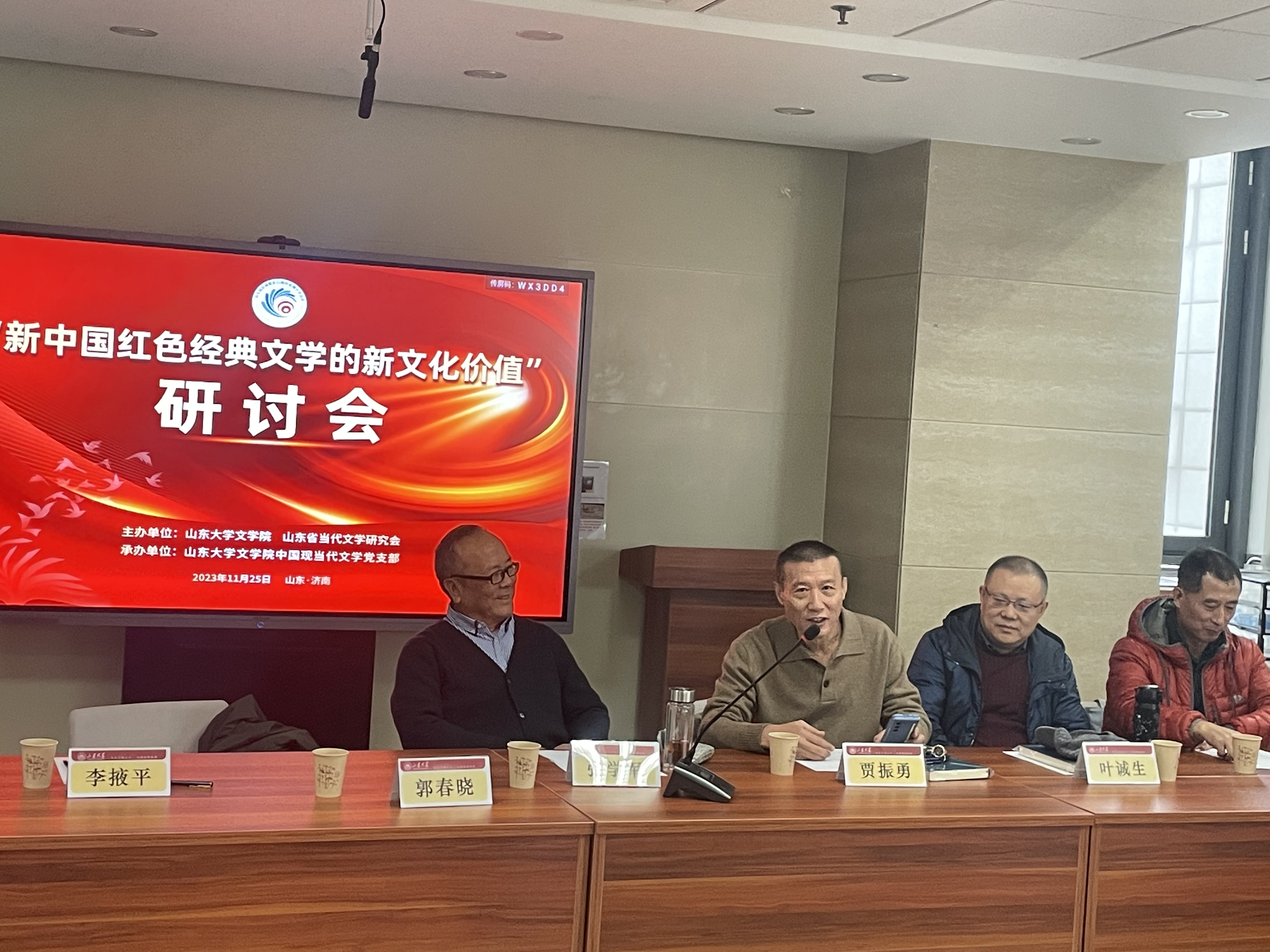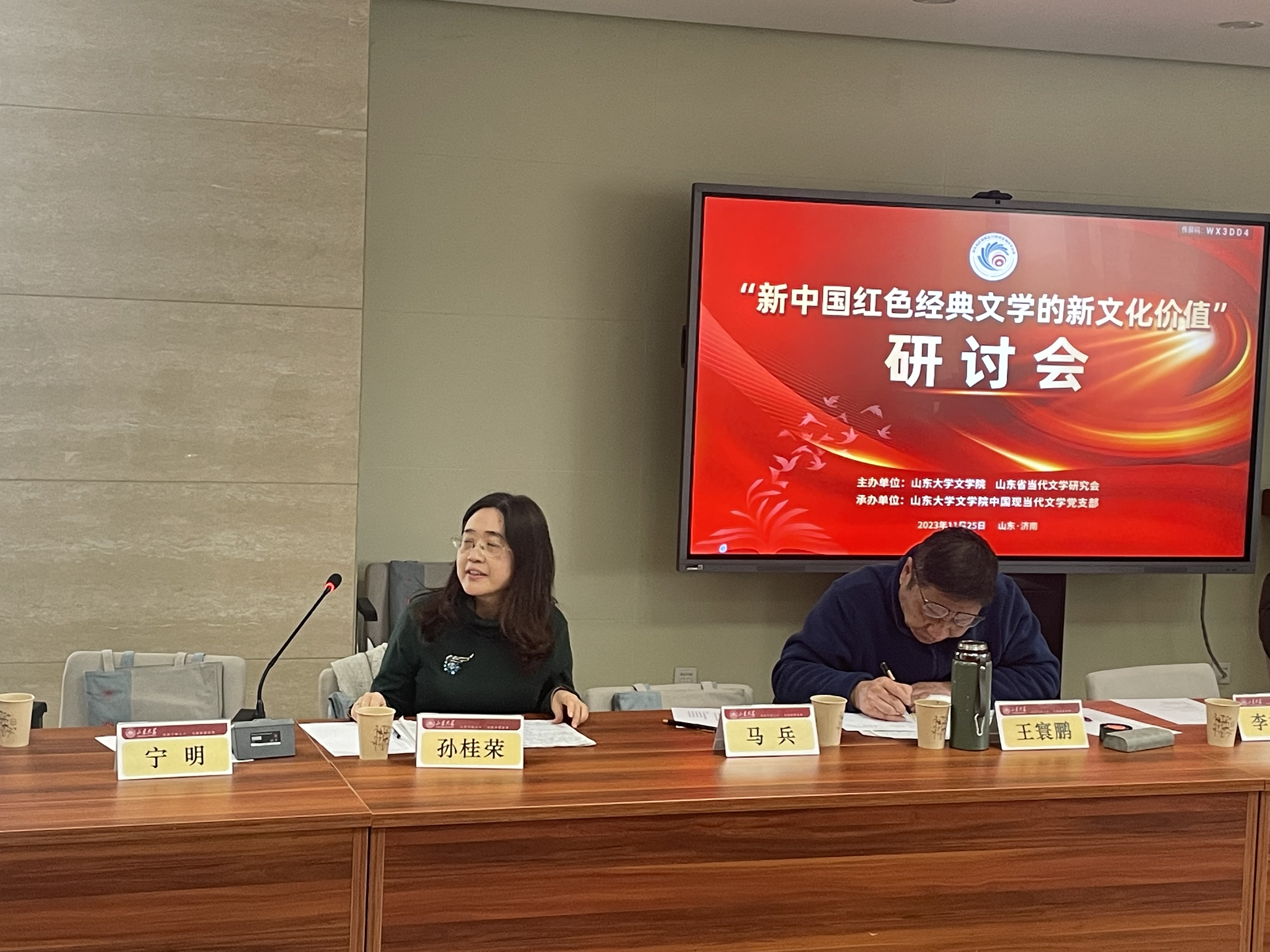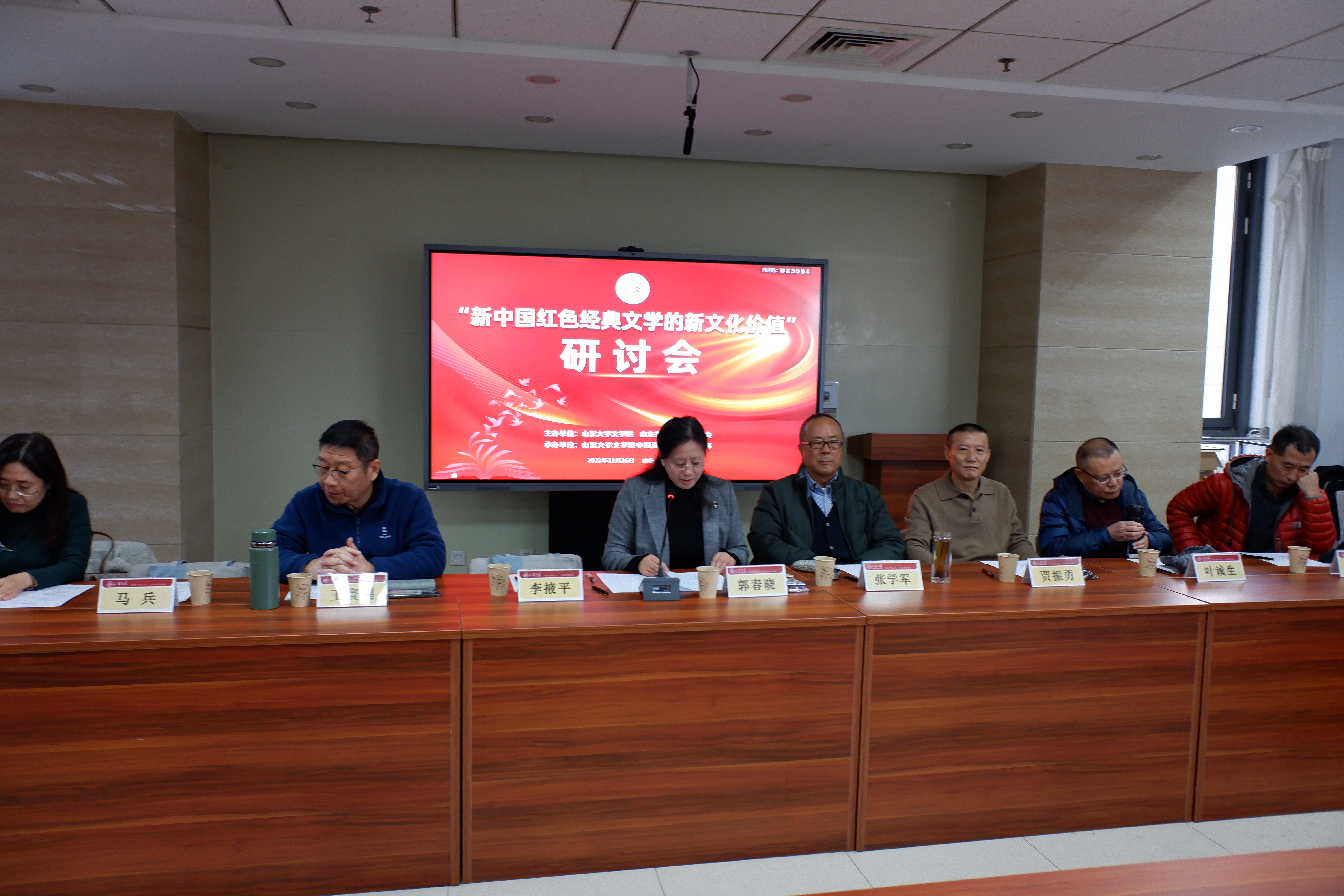 2023年11月25日,“新中国红色经典文学的新文化价值”研讨会在山东大学中心校区知新楼A座606会议室顺利召开,来自山东大学、山东师范大学、滨州学院、山东理工大学、山东青年政治学院、山东警察学院、山东省作家协会、山东大学出版社、《大众日报》等多家高校和文化单位的近50位师生进行了学术研讨,会议由248cc永利集团教授、山东省当代文学研究会秘书长史建国主持。