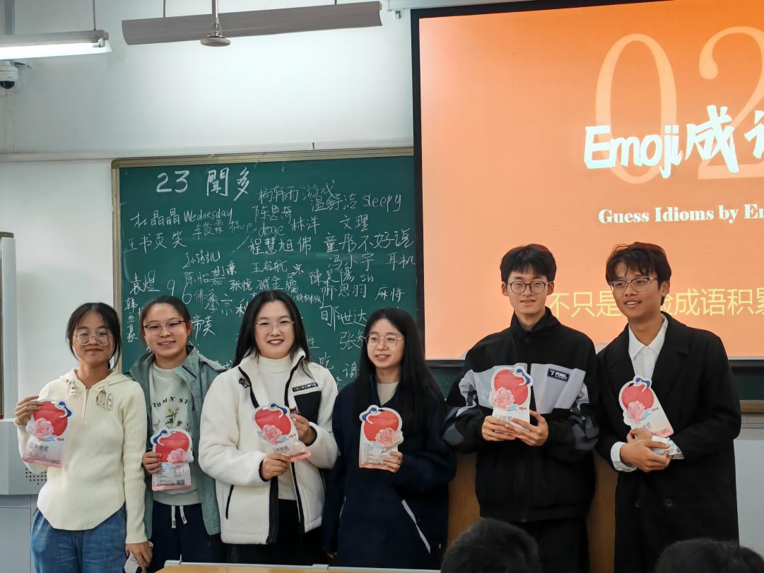 为减轻同学们开学以来在学业课程和学生工作上的压力,各班班委尽可能满足同学需求,设计了一系列有趣新颖的游戏互动环节。各个游戏突出了团队合作、思维训练、文体融合、友好竞争、奖品奖励等特点,调动同学们的积极性,让全班同学共同参与,在一次次问题思考和一阵阵欢笑声中缓解压力,获得属于自己的个人幸福感、集体荣誉感、班级归属感。中文一班“听歌识曲”增强艺术素养,扩展学生认知范围,促进学生综合素质发展;中文二班“你划我猜”强调团队写作,学生在游戏环境中消除陌生感,增进友谊;强基班通过纸牌类游戏,吸引大家兴趣,通过语言和微表情,每个人都聚精会神,投入与心灵交流;闻一多班“表情包猜成语”将当下流行的网络表情包元素与传统成语有机结合,在思考中激发了学生对传统文化的新兴趣,推动传统文化的创新发展。