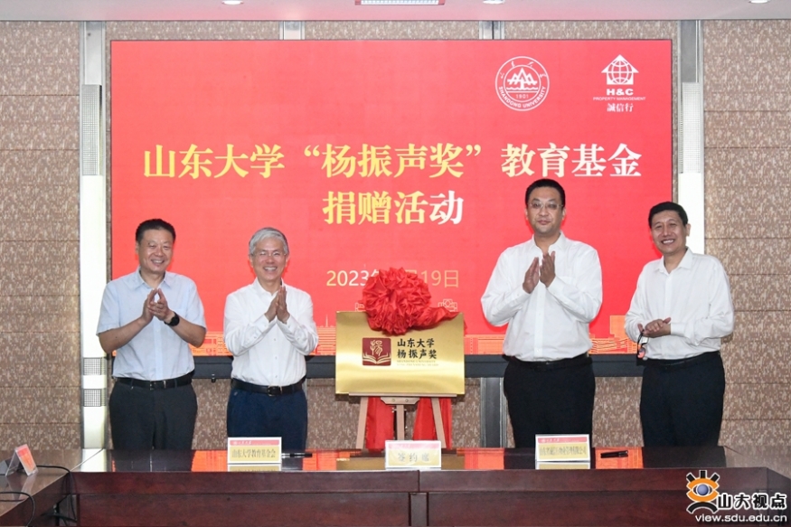 经校友王鸿杰捐资,成功设立“杨振声奖”教育基金。奖励成果显著的专家学者以及表现优秀的青年后学。捐赠额615万元。召开第一届“山东大学杨振声学术贡献奖”评审会。