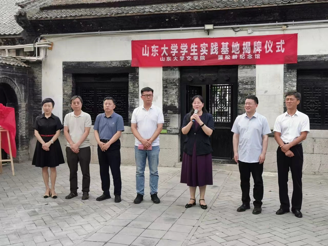 郭春晓在致辞中表示,蒲松龄纪念馆的发展历程是连贯、有序的,馆内所收藏、陈列的藏品特色鲜明、亮点突出,藏品的丰富程度及历史文化价值在文化名人纪念馆中首屈一指。希望通过实践基地建设,能够带动学院更多师生积极参与到蒲松龄纪念馆的建设发展以及聊斋文化的传承当中,进一步推进文学院与蒲松龄纪念馆开展更广泛的学术交流与共建合作,共同促进中华优秀传统文化的传承与发展。