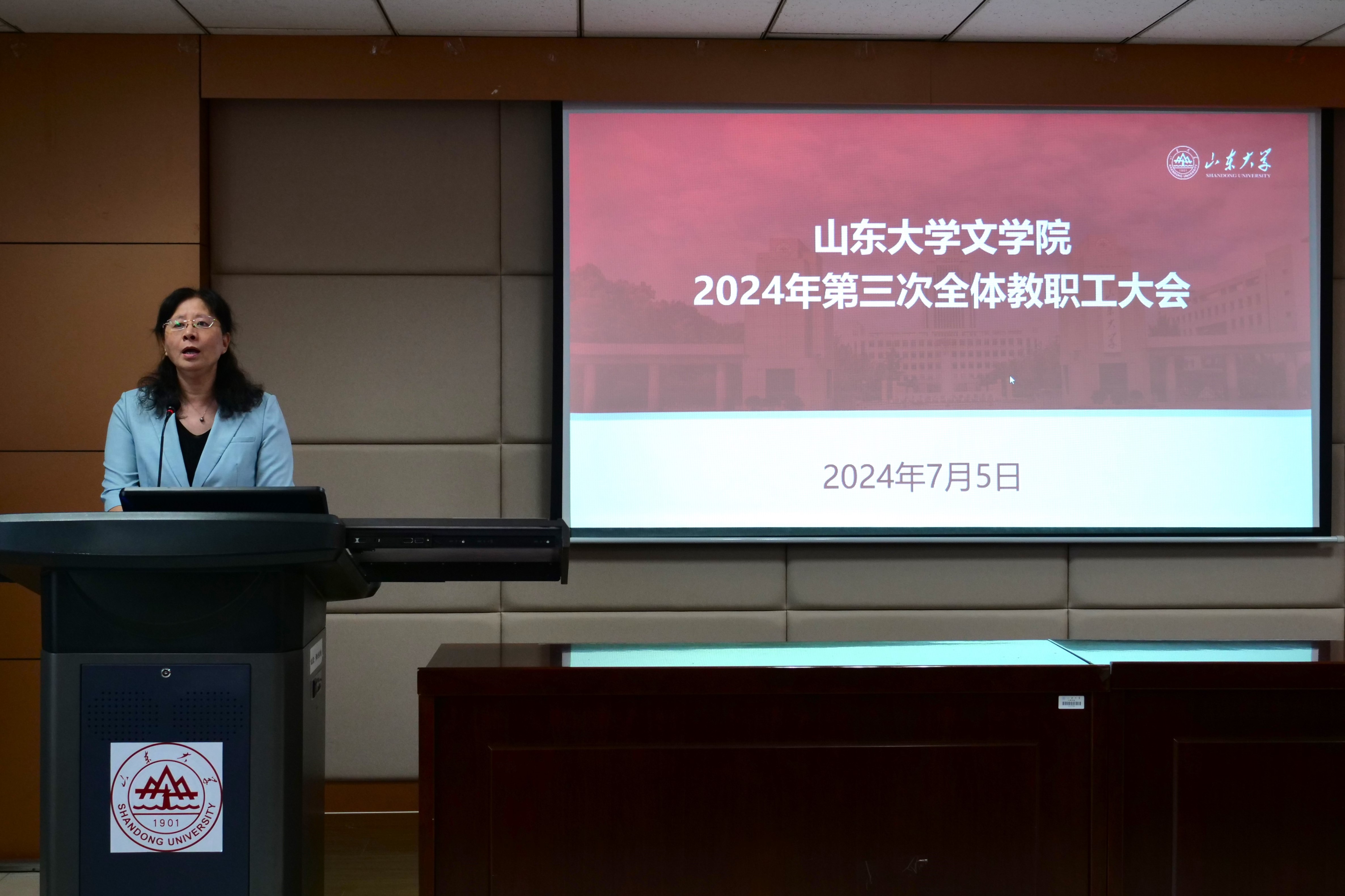 大会最后,郭春晓总结发言。她对全体教职工本学期的辛勤付出表示诚挚感谢,并希望教职工合理规划安排假期时间,为新学期的教学科研、管理服务工作积力蓄势。同时,她鼓励全体教职工不断提高政治站位与战略眼光,深入挖掘学科内涵与文化底蕴,进而自觉担负时代使命、赓续文脉传统,助推中文学科实现高质量、内涵式发展建设,将248cc永利集团打造为担当有为、积淀深厚的新时代学科建设典范与文化传承高地。