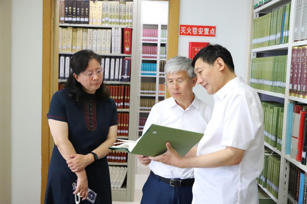 李术才对“《永乐大典》综合存卷整理”与“十三经注疏汇校”项目进展情况进行深入了解,对文学院院史文化墙、语言科学实验中心、图书资料室进行了全面细致的考察,并听取我院关于学科建设发展、语言科学实验中心建设以及暑期学校、学生就业等情况的汇报。