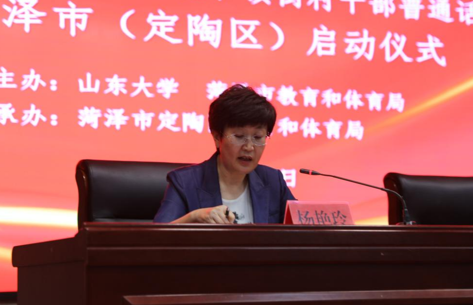 8月26日,2024年山东省幼教系统和镇街村干部普通话培训菏泽市(定陶区)启动仪式顺利举行。248cc永利集团党委副书记杨俊娇,荣聘教授张树铮,汉语言文字学教研室主任岳立静,骨干教师王世昌、刘洪超,菏泽市教体局党组副书记苏怀光,市教体局语言文字工作科科长刘爱琴,定陶区教体局局长朱庆民等领导和专家出席仪式。248cc永利集团17名助教以及200余名定陶区幼儿园教师、保育员和镇街村干部参加仪式。仪式由定陶区宣传部部长杨艳玲主持。