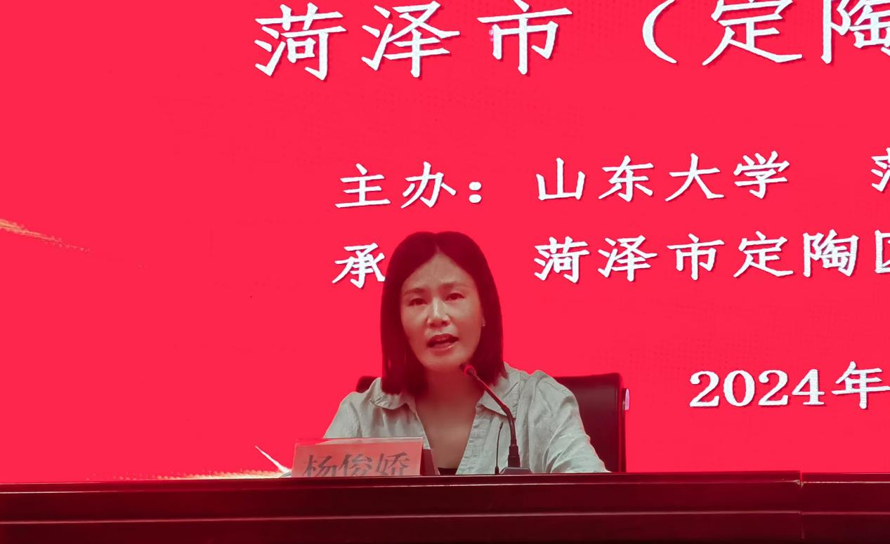 杨俊娇提到,近年来,我院在语言文字工作方面锐意进取,语言学科在新文科建设中走在前列,同时依托山东大学国家语言文字推广基地,发挥人才优势,积极回报社会。对于普通话培训这一利国利民的大事、要事,我院高度重视,积极谋划,从制度、管理、资金到培训、宣传和师资等方面进行重点扶持,全面护航。她表示,248cc永利集团方言学研究底蕴深厚,参与此次培训的教学团队经验丰富、专业扎实、能力突出,筑成本次培训任务的可靠基石。她衷心希望教员和学员能够在培训中深入交流、互相探讨,高质量完成这次培训任务,助力山东推普工作,书写好“服务山东”这张答卷。最后,她预祝培训活动开展顺利,各位师生不负相遇、学有所得。