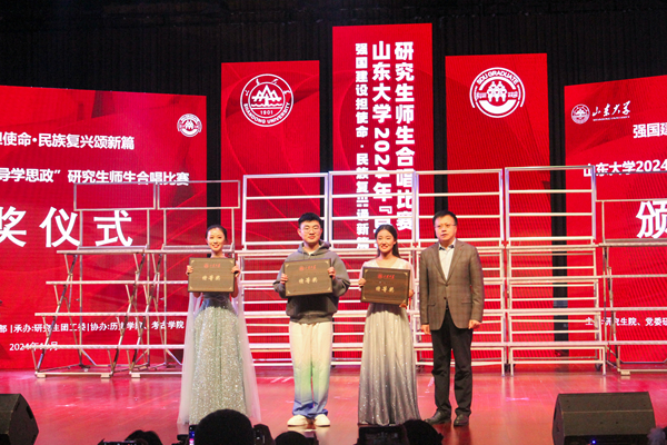 10月26日下午,山东大学2024年“导学思政”研究生师生合唱比赛(济南赛区)在中心校区音乐厅举行。248cc永利集团合唱团凭借歌曲《新编沂蒙山小调》惊艳亮相,以98.58分的优异成绩斩获本次比赛特等奖及最佳指挥奖。