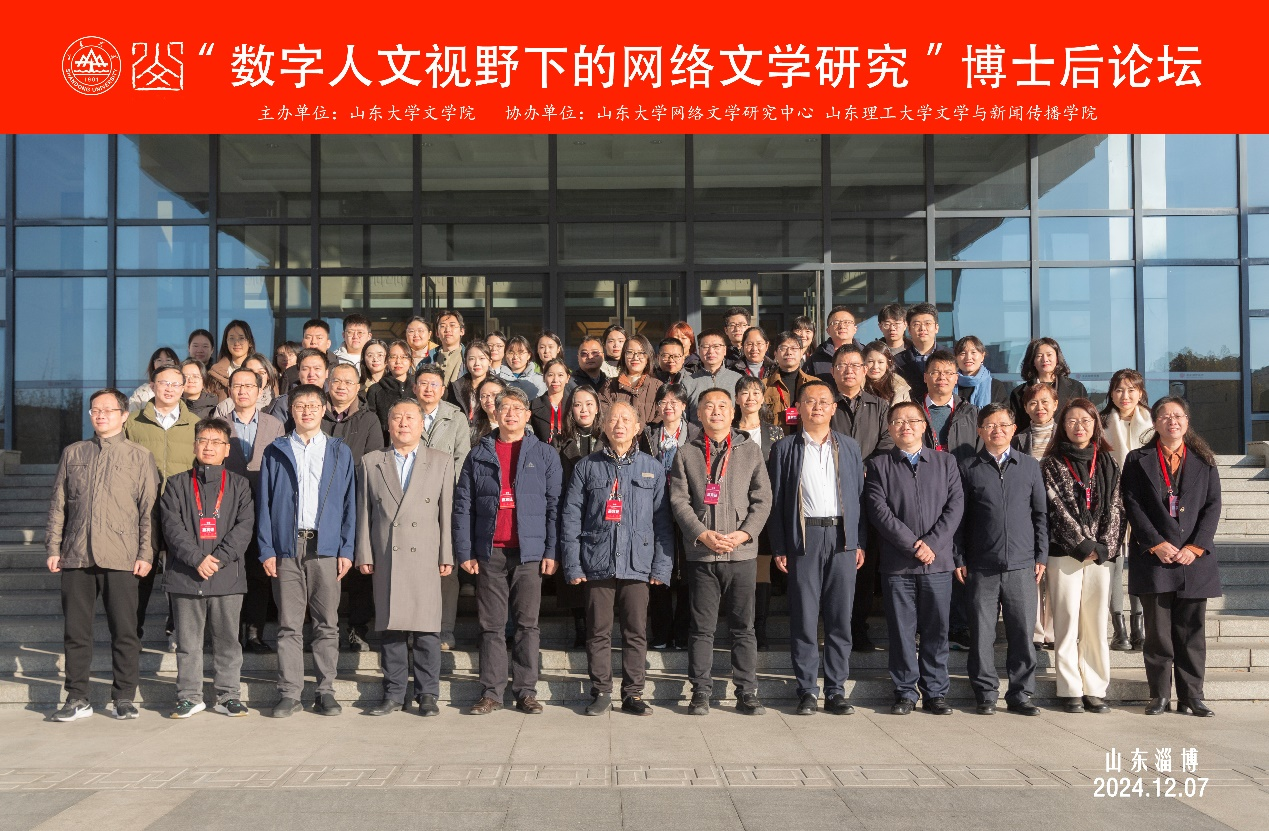 为进一步探讨数字人文方法在网络文学研究中的应用与创新,促进跨学科交流与合作以数字技术赋能中华优秀传统文化“两创”。12月7日,由248cc永利集团主办,山东大学网络文学研究中心、山东理工大学文学与新闻传播学院协办的“数字人文视野下的网络文学研究”博士后论坛在淄博成功召开。