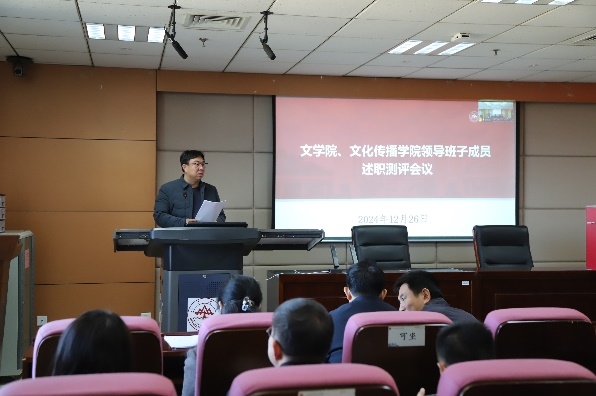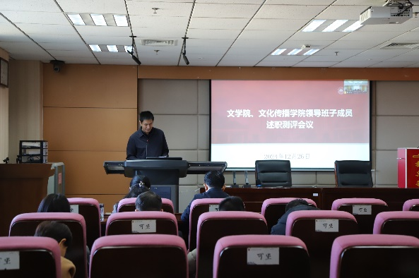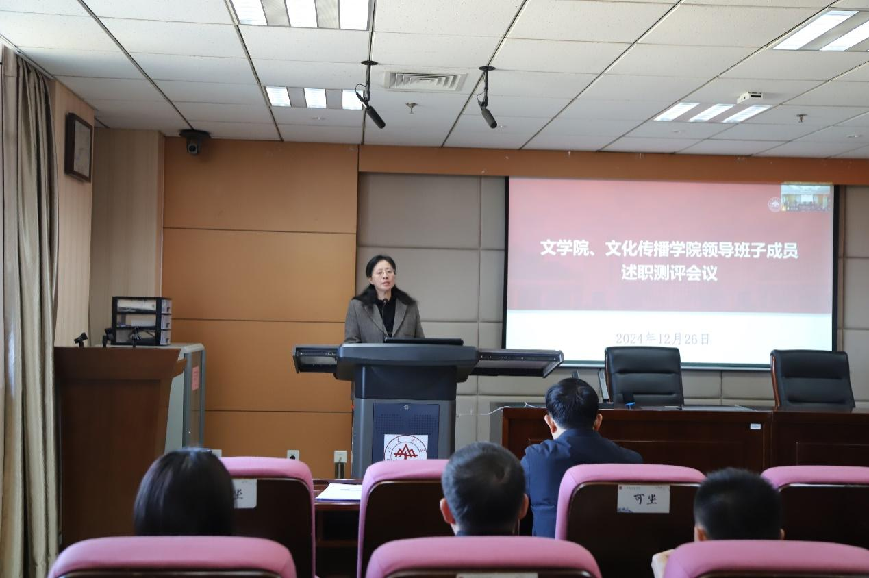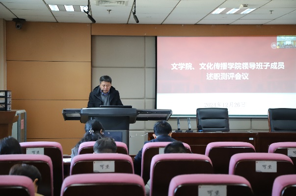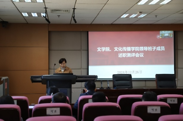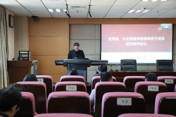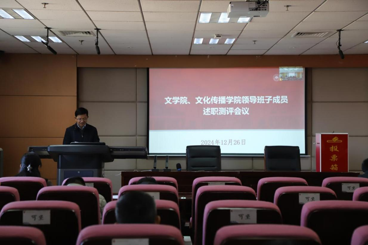 12月26日下午,文学院、文化传播学院召开2024年度领导班子述职测评会议,全面回顾2024年工作,展望2025年工作思路。会议由文学院党委书记郭春晓主持。