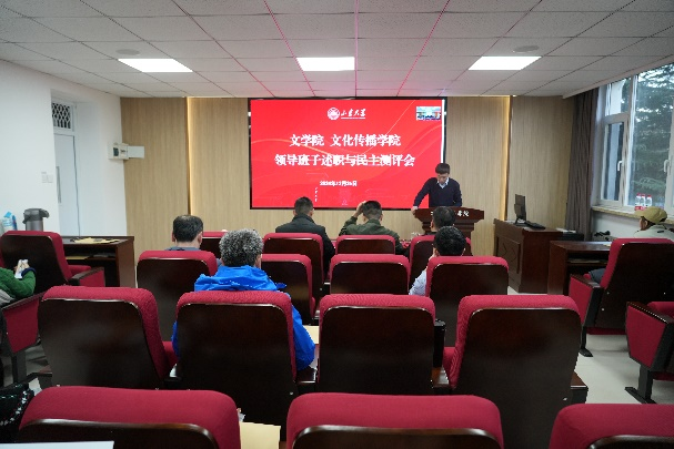 随后,两院班子成员结合自己分管的工作,从德、能、勤、绩、廉等方面进行个人述职。聚焦贯彻落实党的二十大、二十届三中全会精神以及全国教育大会精神,分别就推进中文“一流学科”建设和学院高质量发展总结了工作,分析了问题,深入查摆了原因,并对下一步工作进行了深入的思考和谋划,要充分发挥领导班子表率作用,为做大做好做强中文学科建设打下坚实基础。与会教师认真听取了报告,对两院领导班子进行了民主测评。