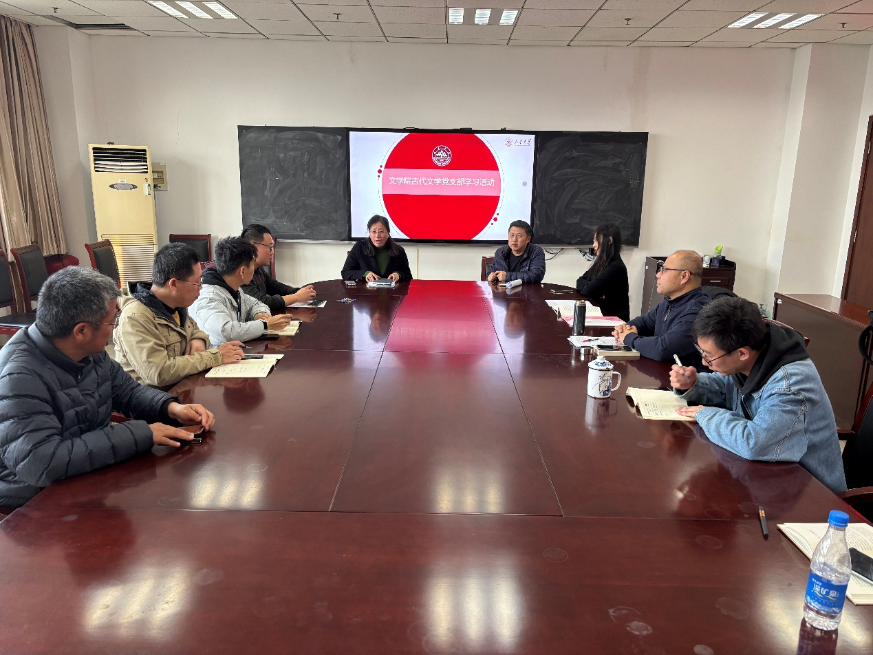 2025年2月27日,248cc永利集团古代文学党支部在知新楼A714召开2024年度组织生活会。支部全体党员通过线上线下相结合的方式参会,院党委书记郭春晓来到会议现场指导工作并发表讲话。