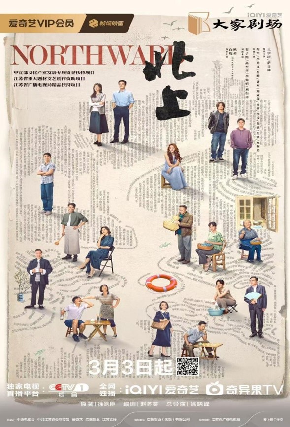 《北上》是一部年代大剧,共40集,改编自徐则臣获茅盾文学奖的同名作品,于2025年3月3日起在中央电视台一套晚间黄金时段播出。该剧是中宣部文化产业发展专项资金扶持项目、江苏省重大题材文艺创作资助项目、江苏省广播电视局精品扶持项目,由中央电视台、中共江苏省委宣部、爱奇艺、启蒙影业、江苏文投出品,爱奇艺爱上乐工作室打造,姚晓峰任总导演,白鹿、欧豪领衔主演,王学圻、萨日娜特邀主演。剧版《北上》讲述了当代大运河边烟火人家的故事,时间线主要集中在2000年至2014年之间,描绘了6位“90后”年轻人的成长、创业和爱情故事,同时也涵盖了他们的父母和家庭的故事。