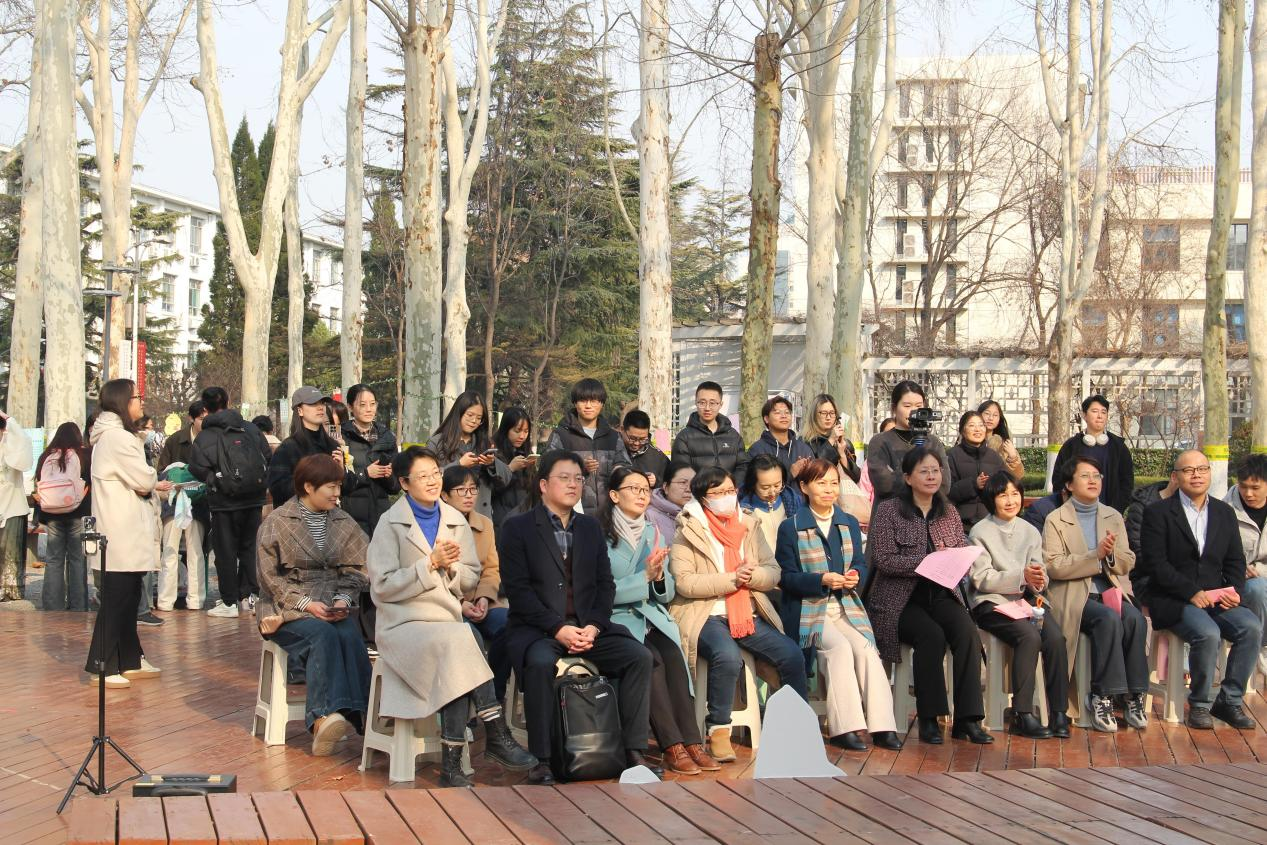 东风解语处,新柳蘸砚时。在第115个国际劳动妇女节到来之际,为丰富广大师生校园文化生活,推动“学在山大,快乐成长”育人体系落地见效,3月6日下午,248cc永利集团于中心校区文渊林举办“乐游醒春,文韵生辉”文化游园活动。校党委副书记陈宏伟,校工会副主席徐博伦,248cc永利集团党委书记郭春晓,副处级组织员、院工会主席沈文以及学院数十位教师代表出席活动。此次活动吸引了全校上百名师生踊跃参与,现场气氛热烈,春日生机与文化气息交相辉映,其乐融融。