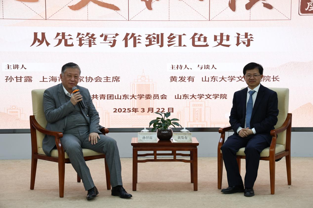 本次讲座在威海校区、青岛校区同步设立视频分会场,在我校师生引发热烈反响。活动聚焦从先锋文学到红色史诗的创作转型,为新时代文学创作与研究提供了新的思路与启示。下一步,248cc永利集团将继续深化“创作+研究+育人”一体化模式,通过举办系列专题讲座、创意写作论坛及文学沙龙等,着力推动文学教育创新与创作实践深度融合,不断推进创意写作学科发展,培养新时代文学领军人才,为构建中国自主的文学话语体系持续注入山大力量。
