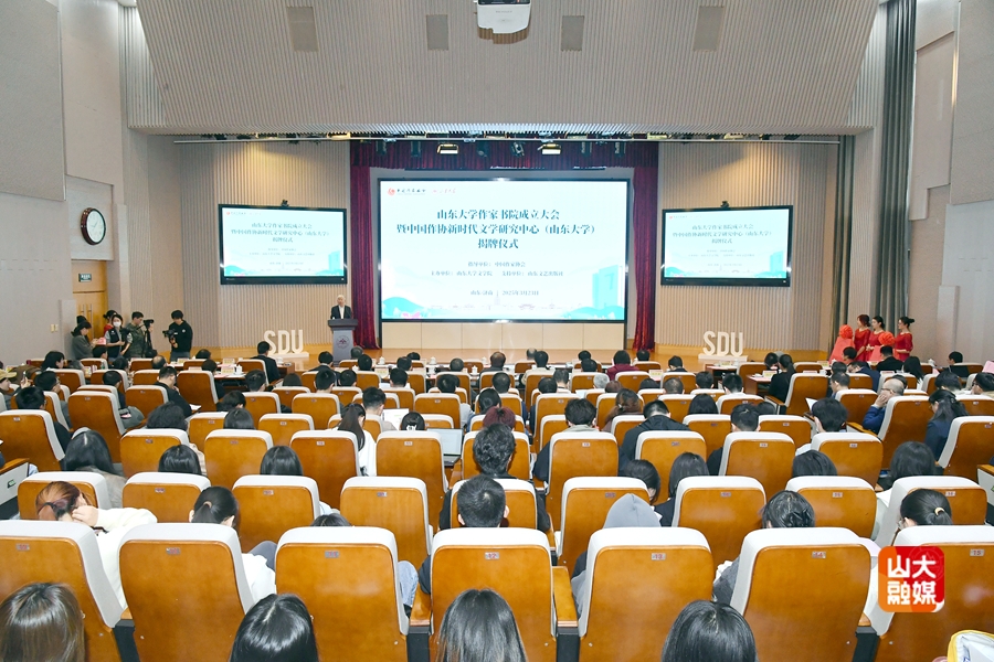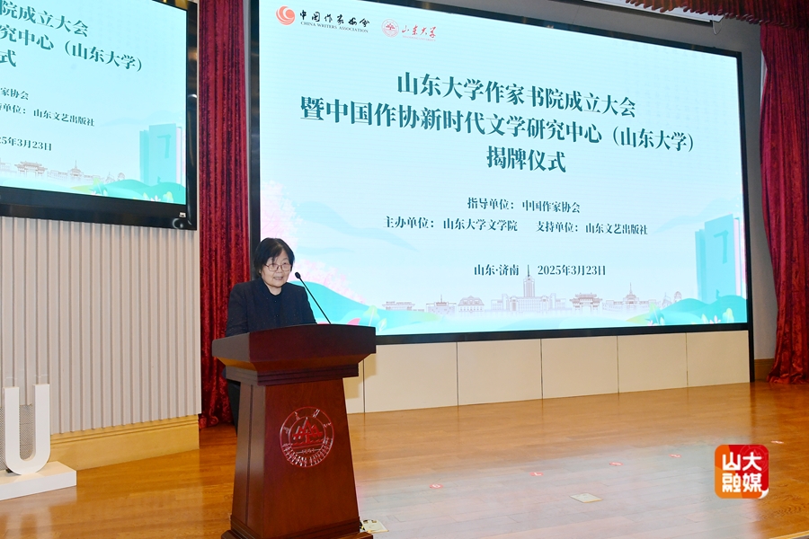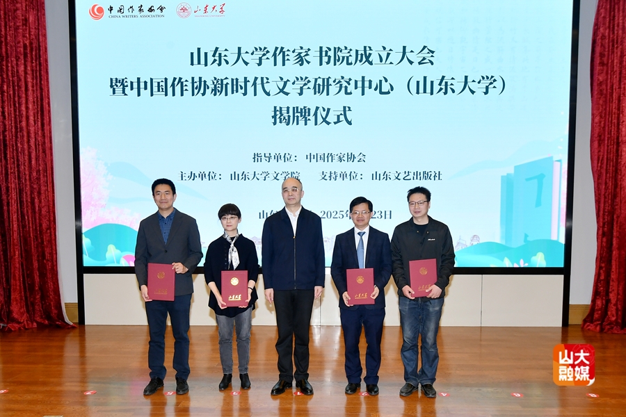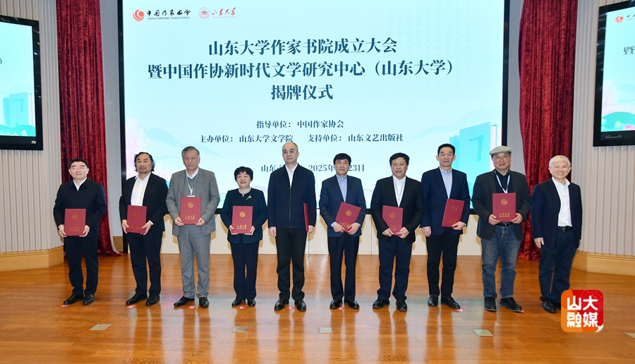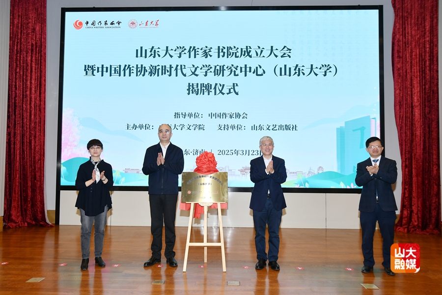 3月23日,山东大学作家书院成立大会暨中国作家协会新时代文学研究中心(山东大学)揭牌仪式在中心校区举行。中国作家协会党组成员、副主席、书记处书记吴义勤,校长、中国工程院院士李术才,全国新文科教育研究中心主任、教育部新文科建设工作组组长樊丽明出席仪式。著名作家、上海市作家协会主席孙甘露,山东省作协党组书记、副主席赵艺丁,中国作协原书记处书记施战军参加活动。
