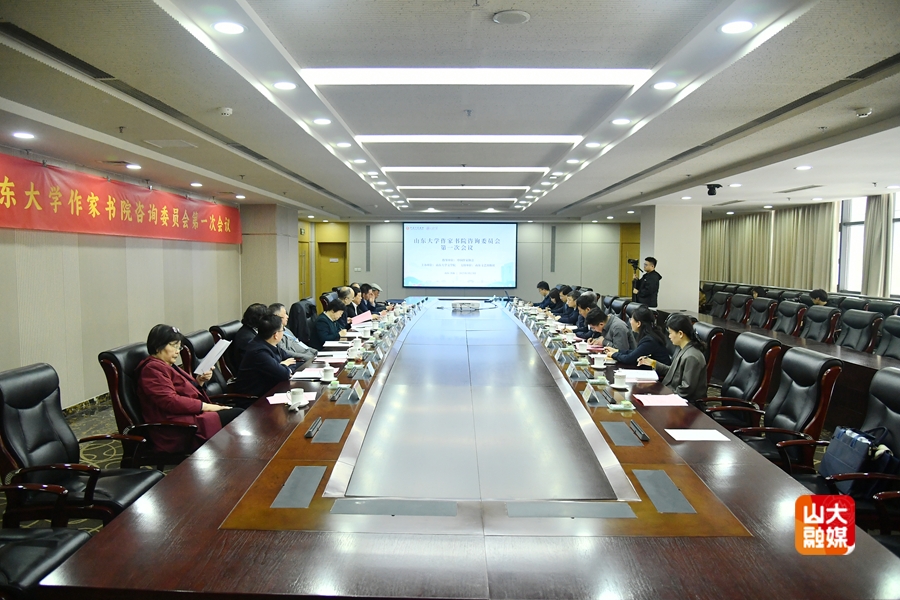 副校长曹现强主持仪式。仪式后,山东大学作家书院咨询委员会召开第一次全体会议。