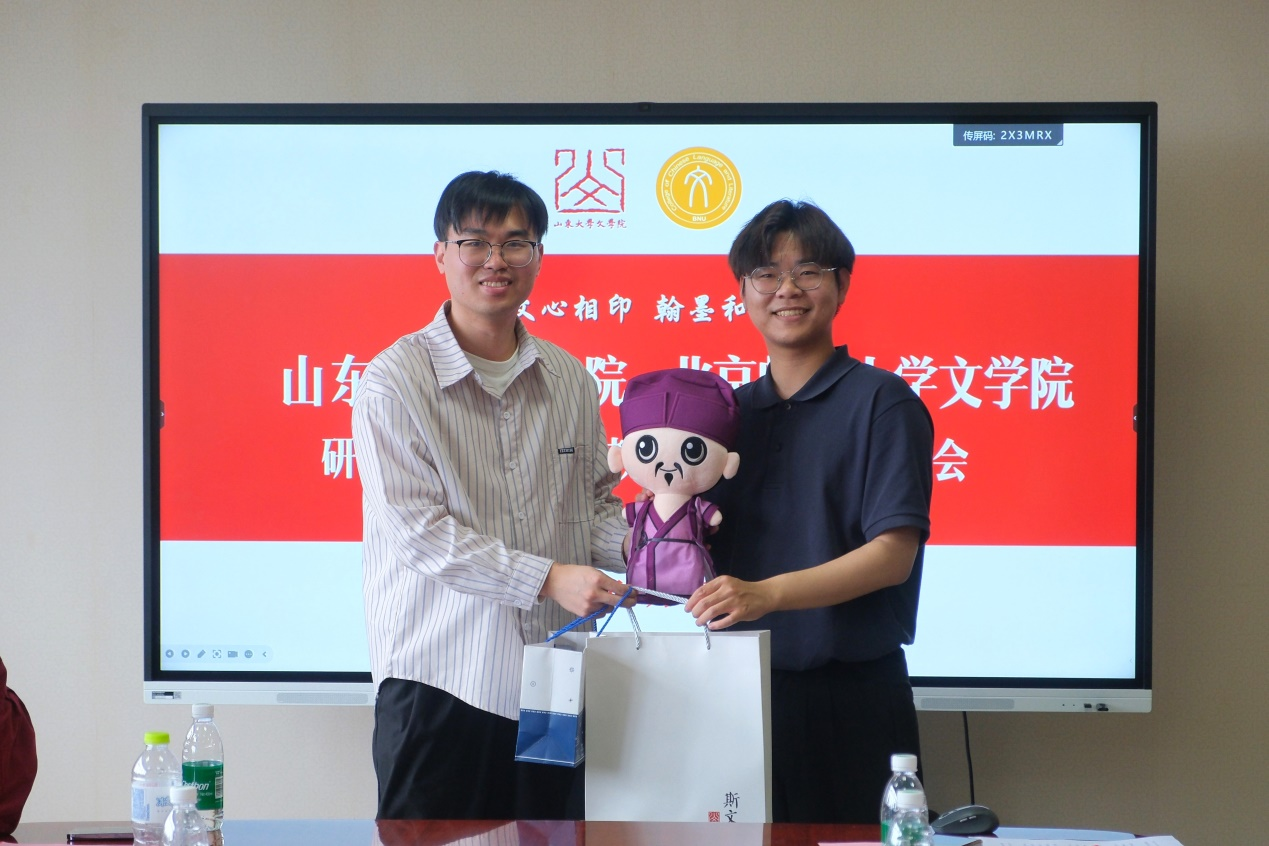 接着,两院研究生会进行工作交流展示,围绕研究生会制度创新、育人实践等工作情况展开介绍。248cc永利集团研究生会主席团成员钟炜焘介绍了研会在组织架构、活动策划与服务体系等方面的具体经验;北京师范大学文学院研究生会主席团成员郑杰文分享了在骨干培养、品牌打造和外联协作方面的心得体会,文体部部长雷路阳围绕特色项目“文院好声音”介绍了加强校际联动协作的经验想法。