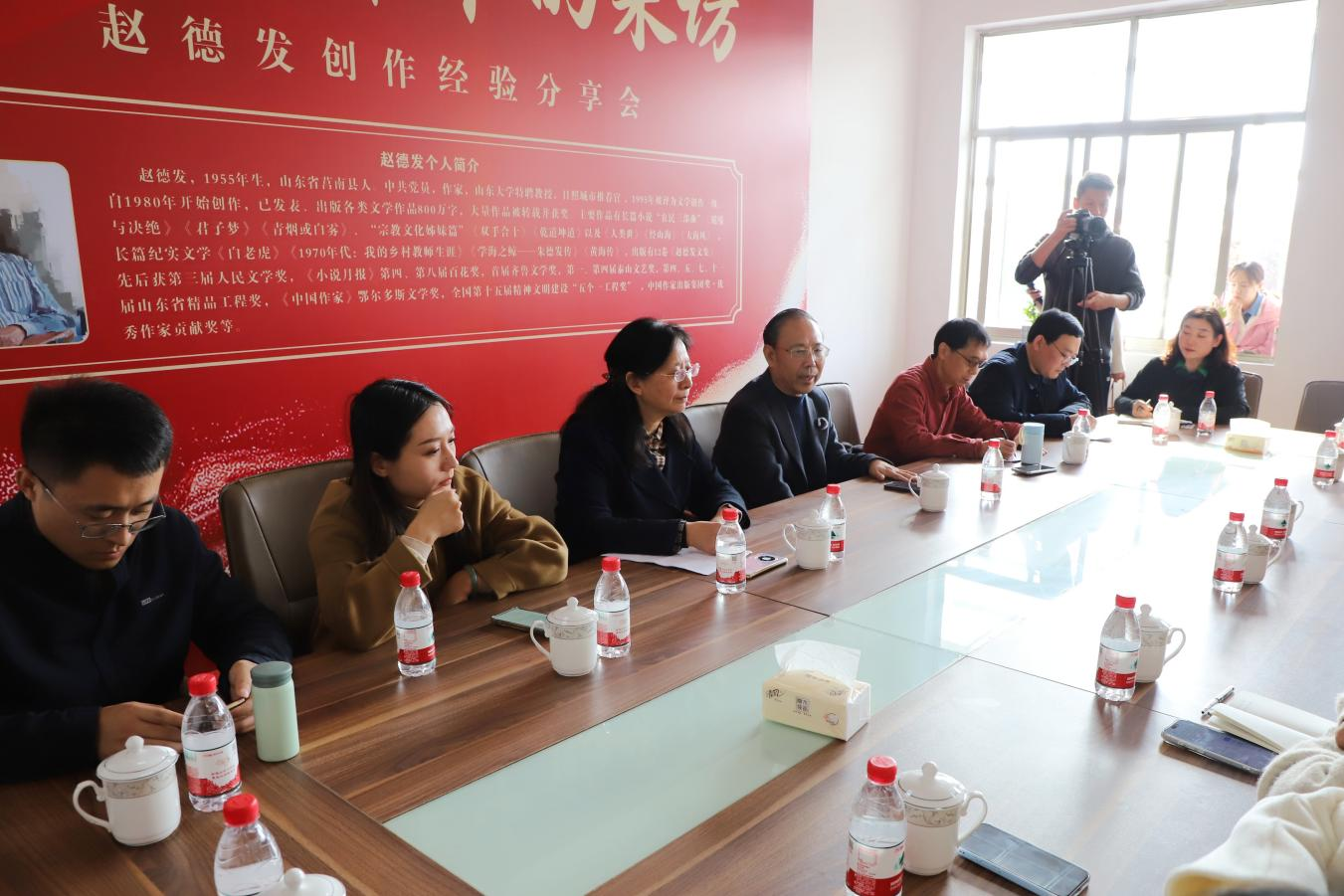 最后,山东大学作家书院执行院长、特聘教授赵德发致辞。他鼓励学生“经山历海”,从日照山海美景中汲取素材、开拓视野,丰富生活积累,提高写作水平。活动期间举办了文学创作经验分享会,他以《文学创作中的采访》为题传授技巧,提醒创作者应扎根真实生活、关注具体人物,何瑛副教授参与交流并点评。师生纷纷表示,此次分享内容兼具理论深度与实践价值,互动交流为创作实践明晰方向、凝聚共识。