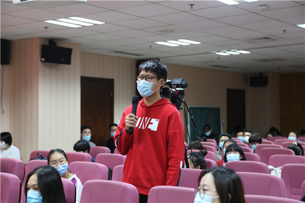 提问环节,同学们纷纷联系各自专业,就科学与人文的关系提出问题,蔡天新一一予以解答。结束时,马兵作讲座总结,强调在文科生普遍对于理科已经比较隔膜的背景下开展本次讲座的重要意义,提醒大家宜充分开拓学术视野,打破学科边界,大胆创新。全场师生对蔡天新的精彩发挥致以热烈的掌声。至此,本场讲座圆满落下帷幕。