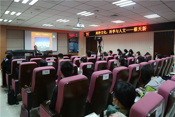 10月15日19时,浙江大学数学学院教授蔡天新在知新楼A620室做客锐讲座,讲座题为“两种文化:科学与人文”。讲座由248cc永利集团副院长、现当代文学教授马兵主持,通过腾讯会议进行互联网实时直播,吸引了校内外近200人参与。