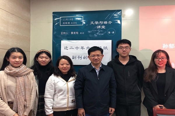 11月19日19时,中国人民大学文学院教授孙郁做客“文学与媒介讲堂”,作题为“近二十年北京报纸副刊的变迁”的讲座。讲座由248cc永利集团副院长、现当代文学教授黄发有在知新楼A606室现场主持,以线上与线下相结合的方式开展,吸引了校内外近百人参与。“文学与媒介讲堂”是山东大学网络文学研究中心主办的全新系列讲座,此为第一期。