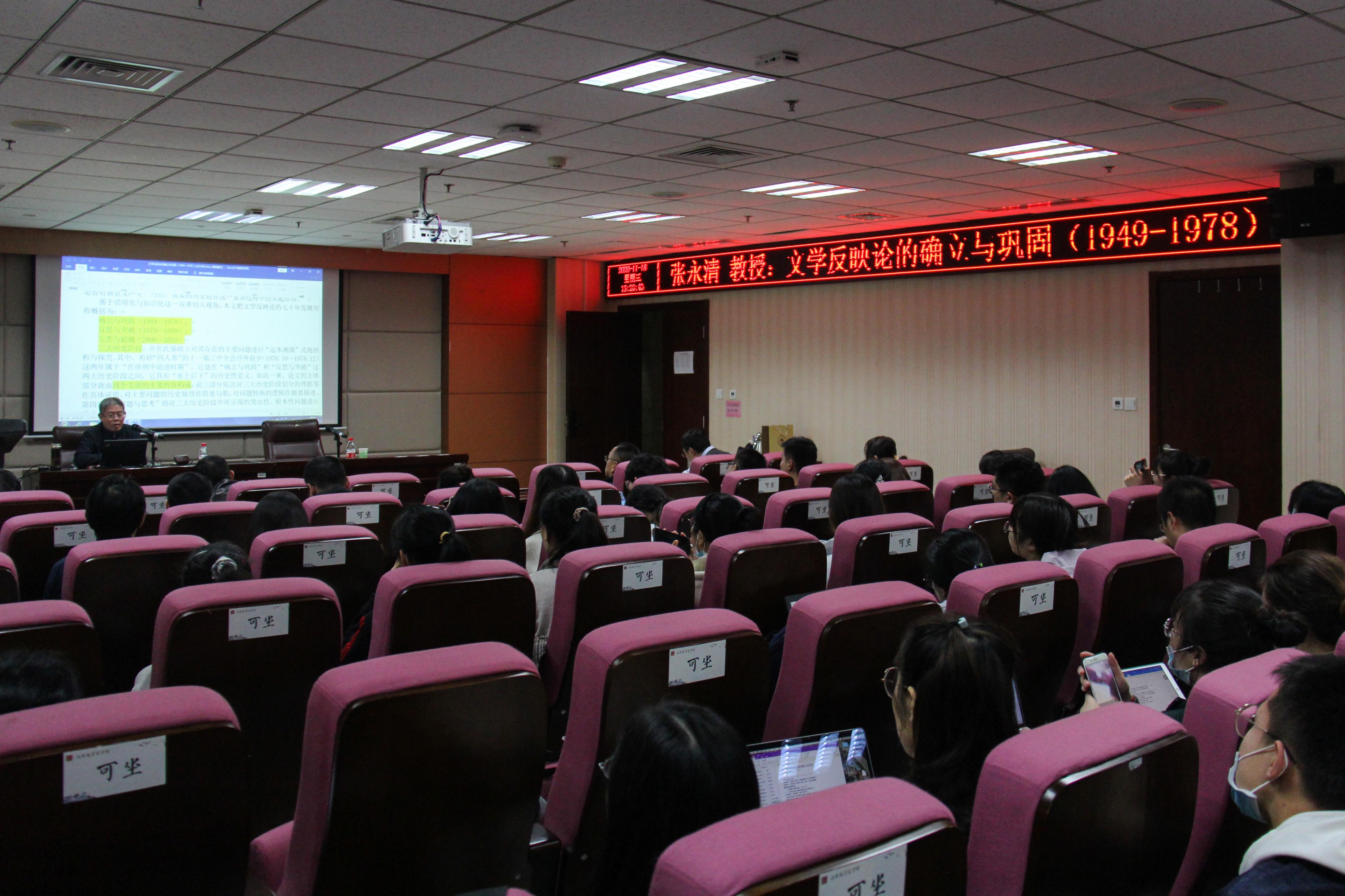 讲座伊始,张永清教授首先回顾了自己研究文学反映论问题的缘起。张教授认为,反映论是中国当代文论中的一个非常重要的问题,围绕反映论产生了诸多争鸣,极为复杂,但目前学界对文学反映论的认识还不够全面,很多问题尚未解决。因此,张教授试图以语境化与知识化的双重视角对新中国七十年来的文学反映论进行总体透视,即在语境化与知识化两者间的交织、错位、对立中探寻文学反映论的整体发展趋势。