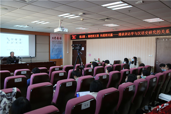 此后,董先生结合具体例证阐述了训诂学和汉语史研究之间的相互作用。一方面,汉语史研究必须重视训诂。他通过列举一系列汉语史研究者在训诂方面曾犯的错误,指出摒弃训诂学的汉语史研究,往往会得出错误结论。另一方面,汉语史的研究成果同样能为古文献训诂提供有力的帮助。同样,他也通过列举几个在训诂中利用汉语史研究成果的例子,对这一方面展开了详实而生动的论述。董先生总结到,训诂学和汉语史虽然产生于东西方文化的不同背景,有着各自目的及研究内容,但它们的研究对象都主要是以历代流传下来的文献语言材料为依据,因此二者又存在着难以截然分离的密切联系。在提倡多学科融合的今天,更应该将汉语史研究与训诂研究有机结合起来。