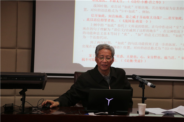 12月15日下午14时30分,南京师范大学教授、博士生导师董志翘做客248cc永利集团“新杏坛”,在知新楼A620作题为“隔绝则互损,沟通则双赢——漫谈训诂学与汉语史研究的关系”的讲座。讲座由248cc永利集团副教授刘祖国主持,文学院杨端志、徐超教授,儒学高等研究院宋开玉教授到场参加。讲座开始前,刘祖国对董先生的到来表示热烈欢迎,并简要地介绍了董先生的学术成就。