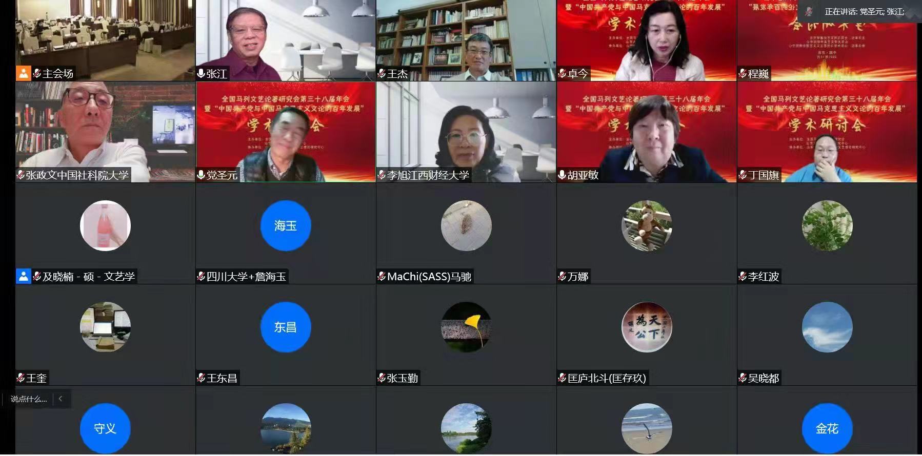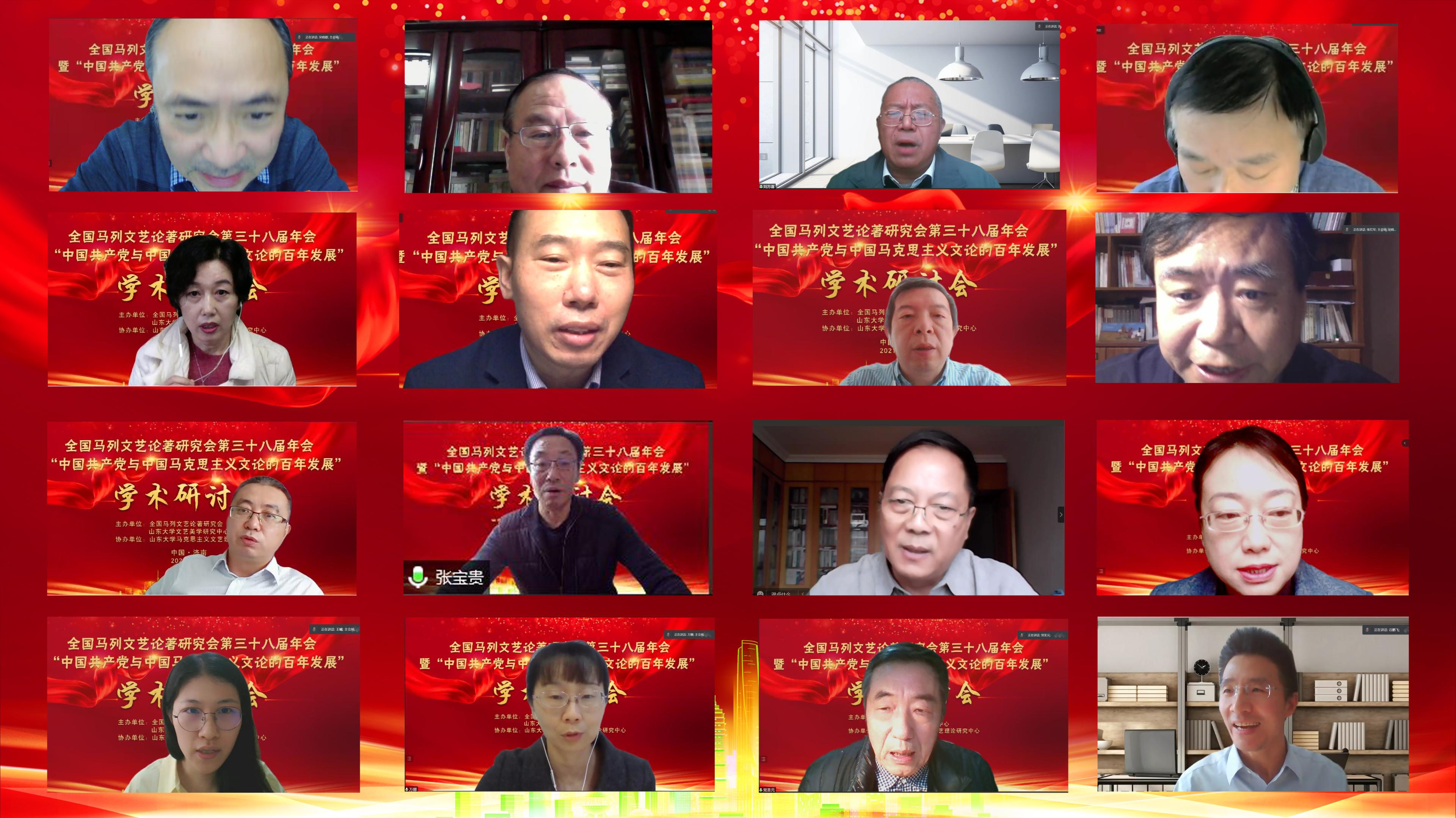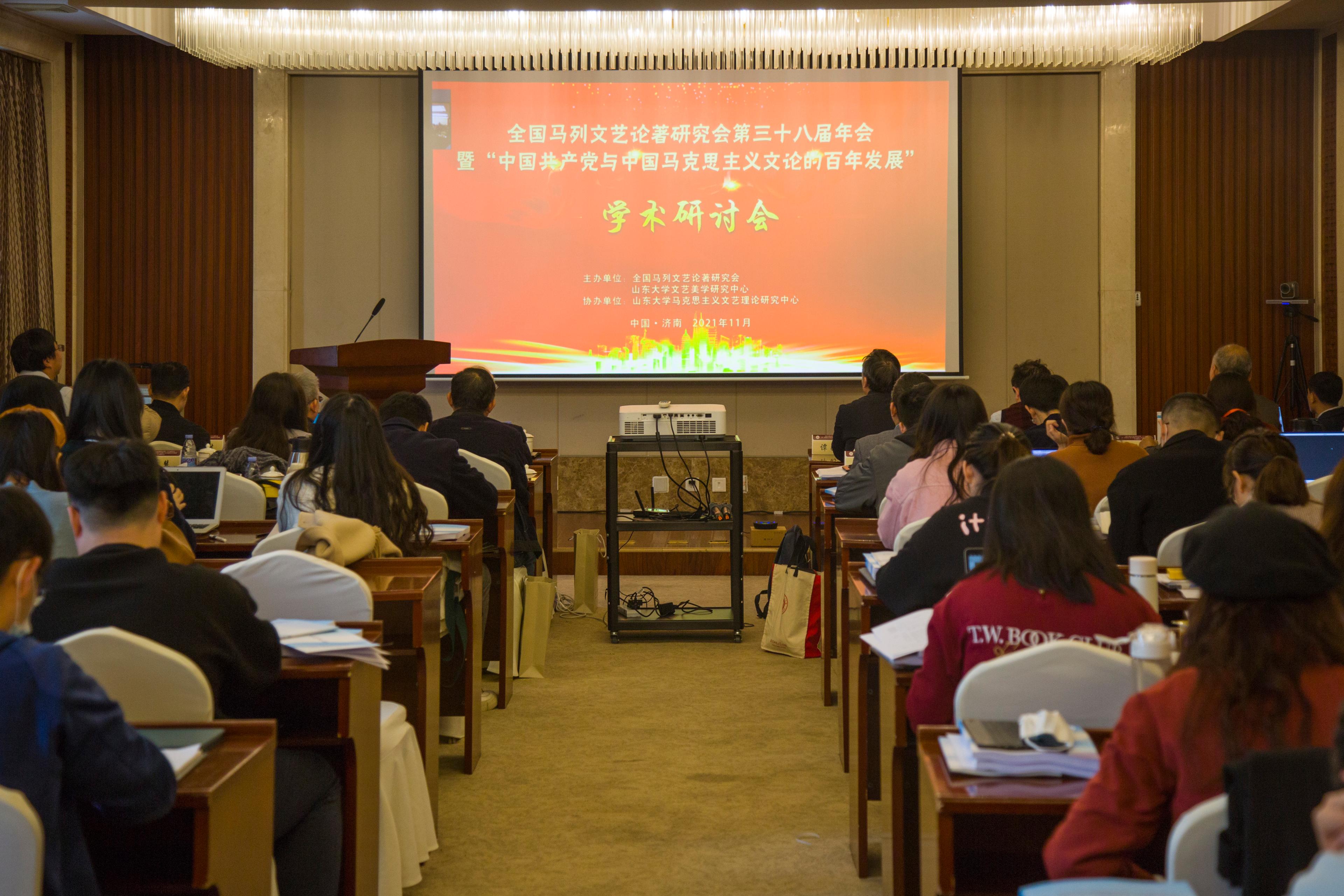 2021年11月6日-7日,全国马列文艺论著研究会第三十八届年会暨“中国共产党与中国马克思主义文论的百年发展”学术研讨会在济南成功举办。本次会议由全国马列文艺论著研究会和山东大学文艺美学研究中心联合主办、山东大学马克思主义文艺理论研究中心协办,采取线上线下相结合的方式。来自中国社会科学院、中国人民大学、复旦大学、华中师范大学、华南师范大学、上海社会科学院、山东师范大学、山东大学等高校及科研院所的80余位专家学者出席了本次会议。