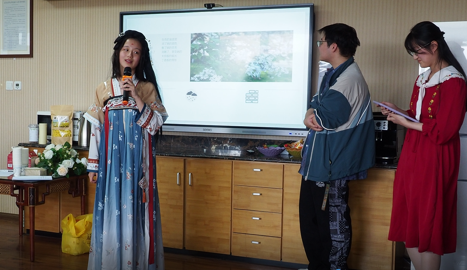 2023年3月30日14点,文学院于知新楼A609举办山大文苑沙龙第十六期——山大花木诗词吟诵会,本次沙龙由文学院副研究员刘阳河老师主持,文学院副教授张燕芬老师作为特邀嘉宾参与此次活动,吸引了文学院、数学院、管理学院、软件学院、历史文化学院等四五十名学生参与。