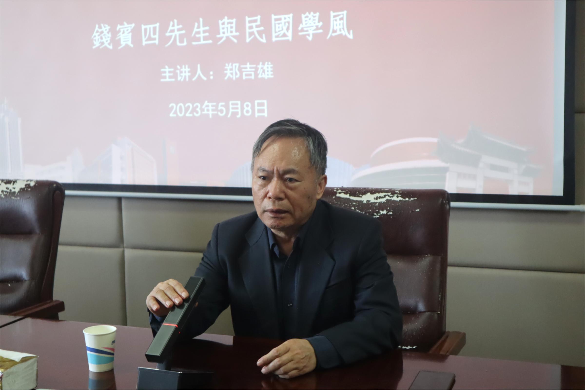 5月8日下午14:30,台湾大学中国文学博士,香港教育大学文化历史讲座教授郑吉雄教授做客第329期“新杏坛”,于知新楼A620室作学术讲座,题为“钱宾四先生与民国学风”。讲座由谭好哲教授主持,吸引了数十名师生前来聆听。