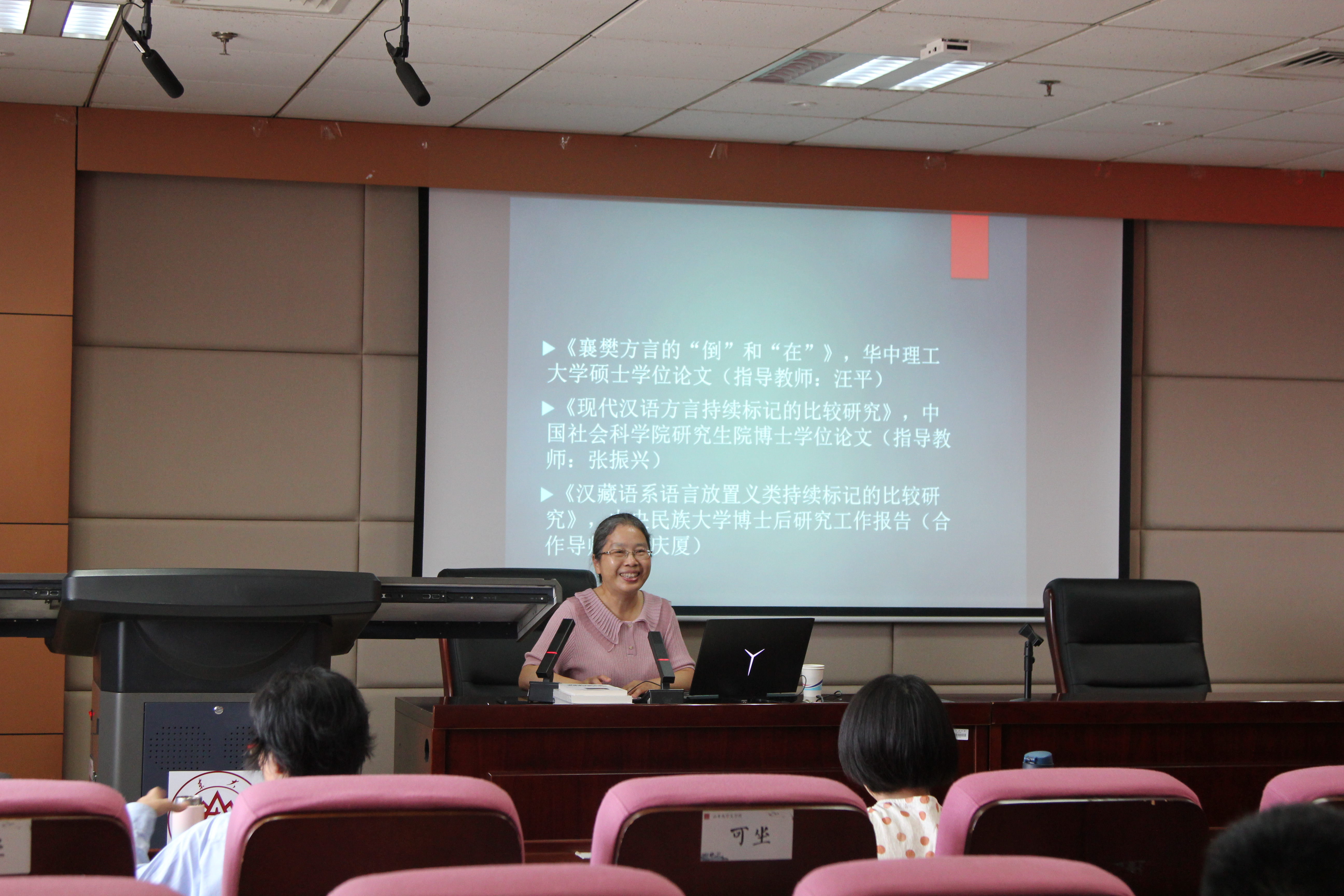 6月25日14点30分,中国语言学会理事、中国民族语言学会常务理事、中央民族大学中国少数民族语言文学学院罗自群教授做客第342期“新杏坛”,于知新楼A620室作题为“山东方言两种持续体的特点”的学术讲座。讲座由岳立静教授主持,张燕芬副教授、寇鑫副教授出席,数十名硕博士研究生和本科生参加讲座。